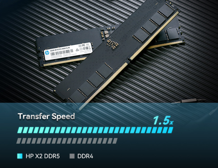 La memoria DDR5 opera con un voltaje más bajo en comparación con DDR4 (1,1v frente a 1,2v), lo que resulta en un menor consumo eléctrico y una disminución en la generación de calor. Gracias al controlador integrado en el módulo, la memoria HP X2 logra un ahorro de energía de aproximadamente un 20% en comparación con DDR4.