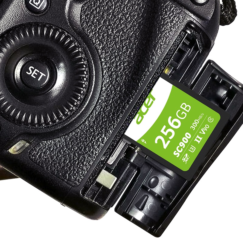 Las tarjetas de memoria flash SC900 de Acer cumplen con el estándar SDXC UHS-II y garantizan un nivel de rendimiento capaz de responder a altas exigencias. Sus velocidades de lectura de hasta 300 MB/s y de escritura de hasta 260 MB/s permiten manejar archivos de video de gran tamaño con rapidez y facilidad.