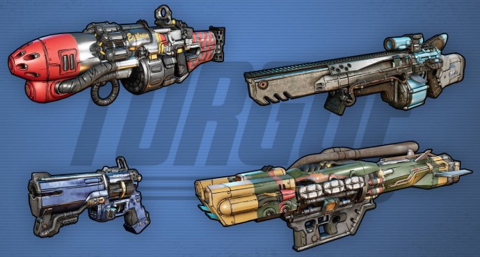 Torgue: Podrás variar entre los modos de fuego regular y de proyectil pegajoso. Los disparos de proyectil, son adhesivos y causan más daño si un grupo de ellos detona en el mismo objetivo.