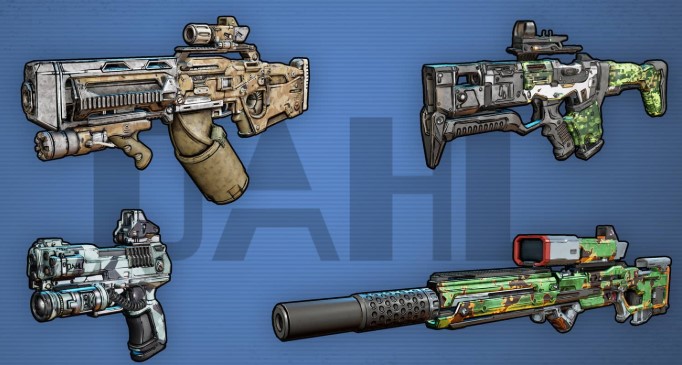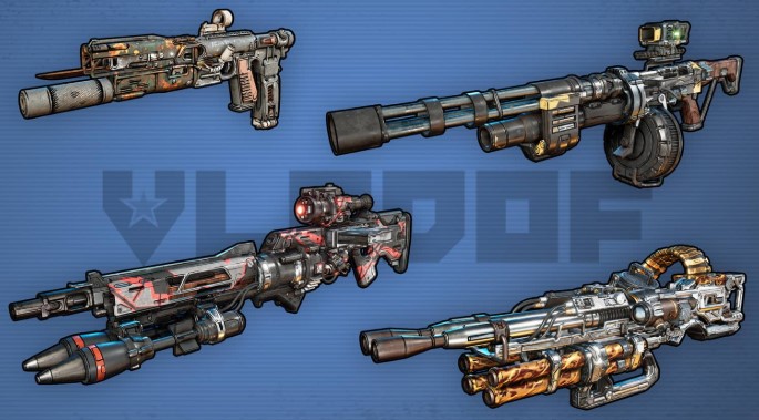 Vladof: A estas pistolas de fuego rápido se les puede agregar distintos accesorios debajo del cañón, como: tasers, tubos de cohetes e incluso, más cañones.