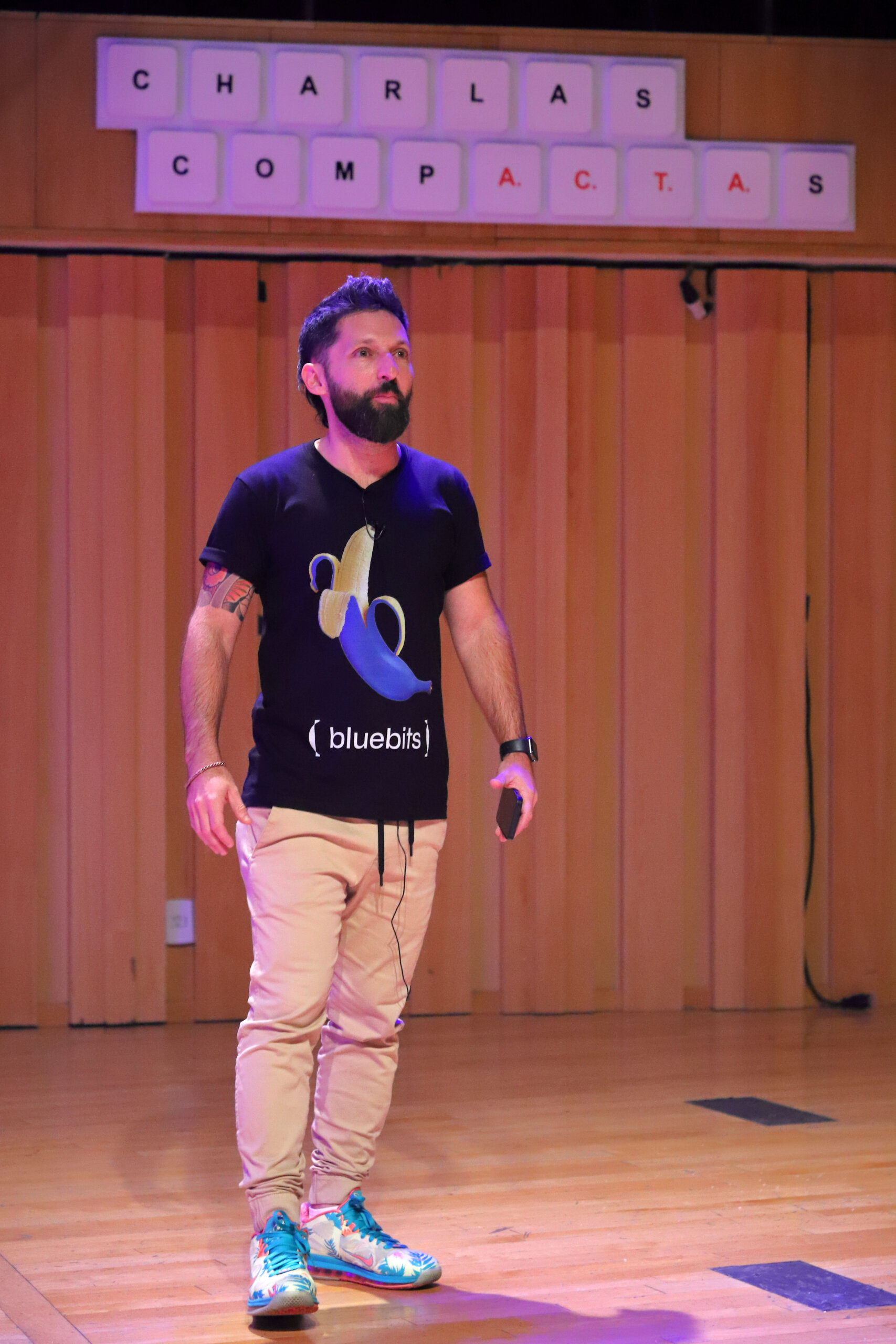 Los oradores tocan temáticas centradas en la inteligencia artificial, la robótica, las redes sociales, la confección de guiones y proyectos para plataformas, distribución del conocimiento, NFT, influencia digital. Además, Dj Macabre musicalizo los intervalos dentro de una instalación lumínica con forma de mate fotosensible a los graves, creación del arquitecto Franco Beverati.