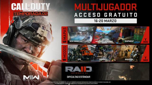 Tras el lanzamiento de la Temporada 02 Recargada, el periodo de acceso gratuito ofrecerá una selección limitada de experiencias multijugador y de operaciones especiales para que los que no posean el juego puedan adentrarse en Call of Duty: Modern Warfare II.