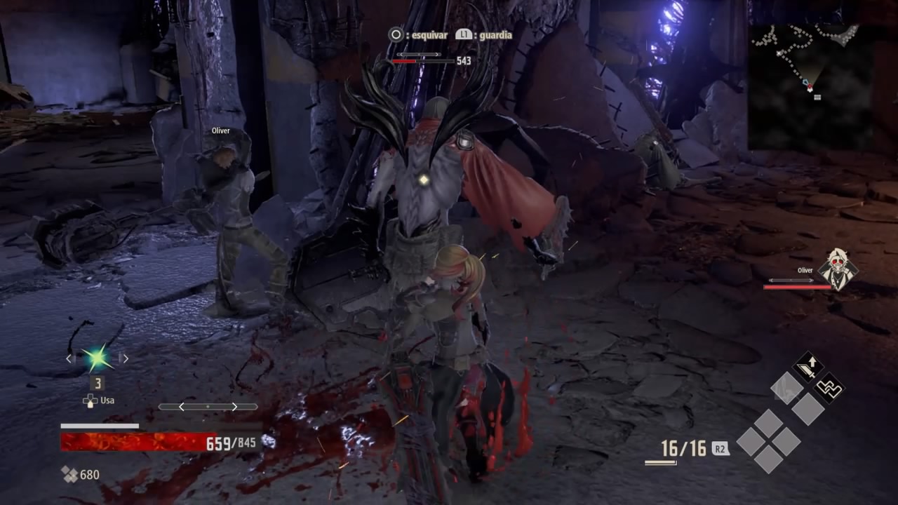 Ya hablando del combate en si todo resulta muy simple, tenemos: ataques ligeros y pesados, podemos bloquear y esquivar, a su vez contamos con la posibilidad de utilizar las técnicas especiales y drenar sangre. El componente cooperativo es casi una piedra angular en el juego, y el gameplay se construye alrededor de esto. En todo momento vamos a contar con un aliado que nos ayudara en los combates, pueden ser controlados por la IA, y a su vez algún amigo, siendo un juego ideal para Co-Op.