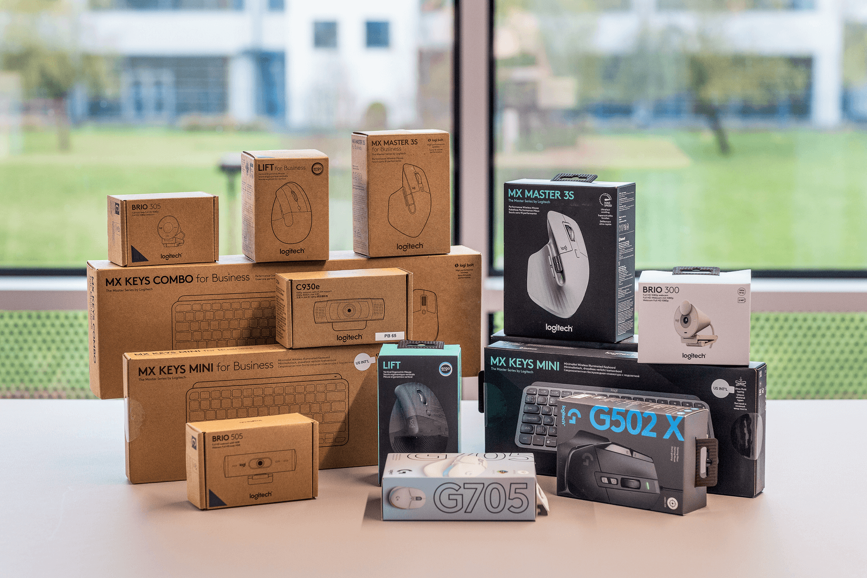 Para tomar acción, Logitech comenzó a colocar etiquetas de impacto de carbono de los productos en los embalajes y en todo su sitio web. Hoy en día, hay dos tipos: ambas etiquetas tienen una declaración de ‘Carbono neutro certificado’ porque se han compensado las emisiones de carbono restantes en toda la empresa y su cartera de productos. Los productos con un número de impacto de carbono se han sometido a un análisis detallado para determinar la cantidad total de carbono emitida durante la fabricación, el transporte, el uso y el final de su vida útil.