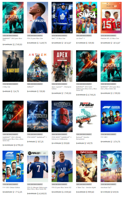 A continuación, les mostramos los títulos que se encuentran con descuento en la tienda de Xbox gracias a las ofertas “Distribuidor Electronic Arts”.