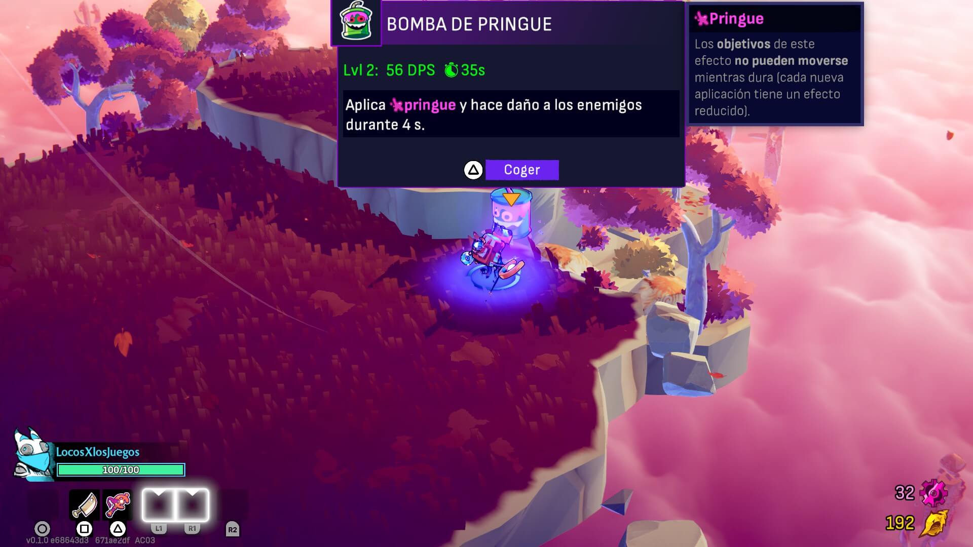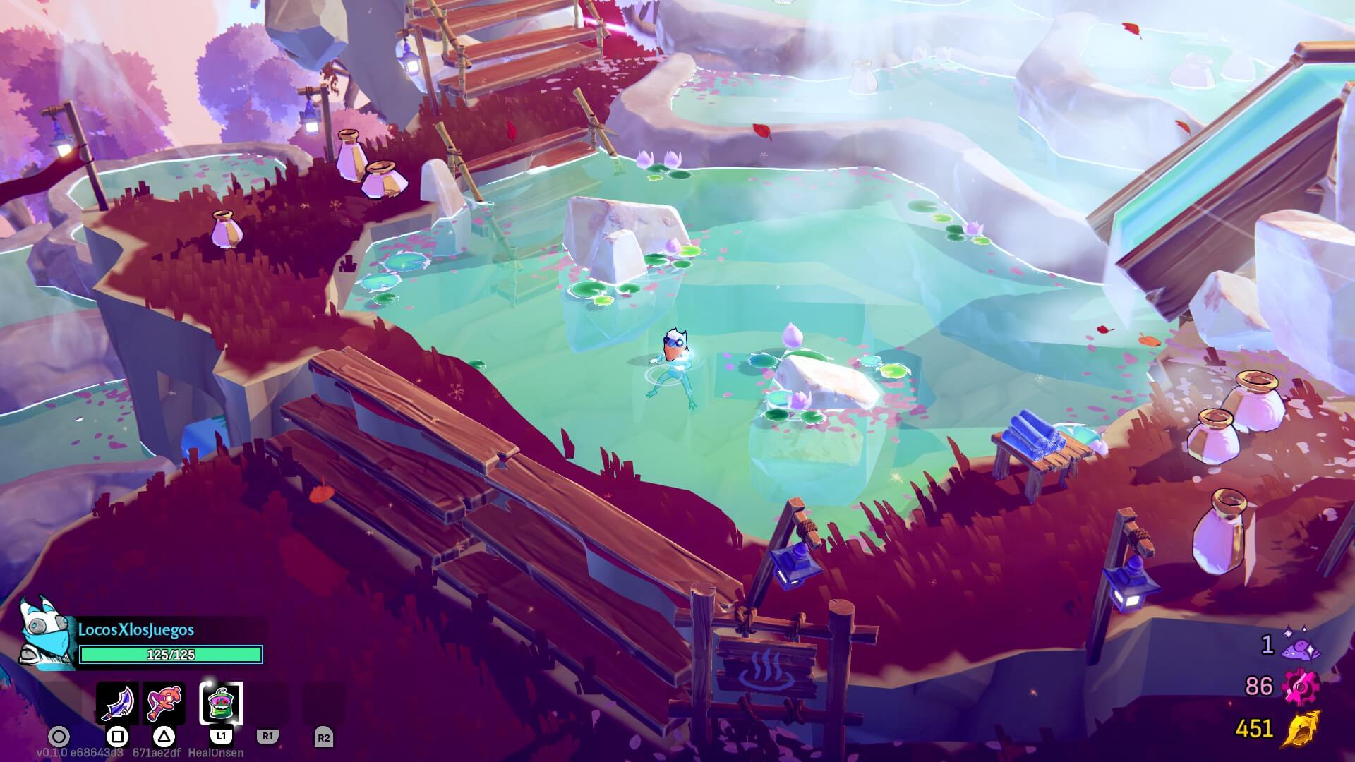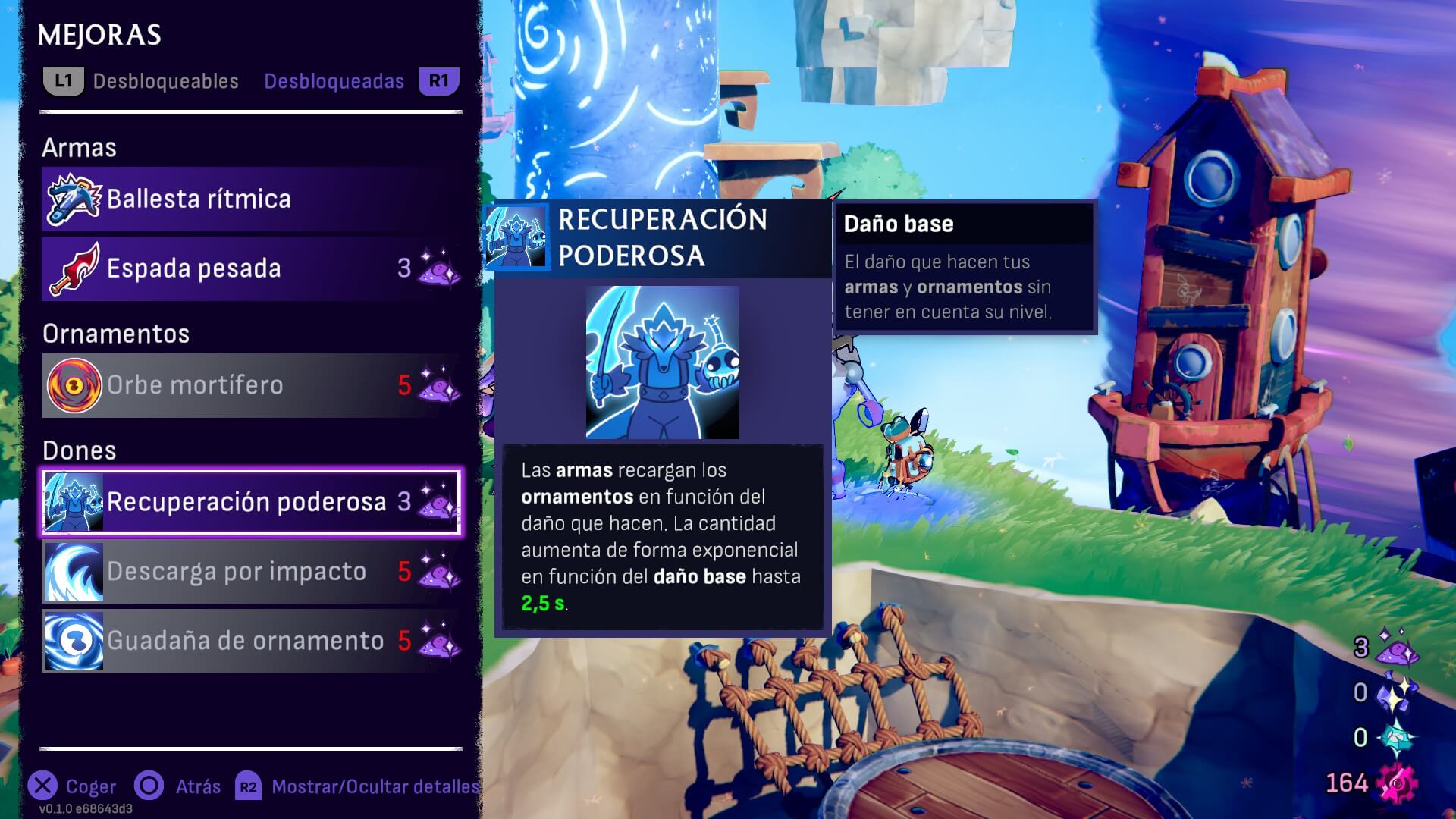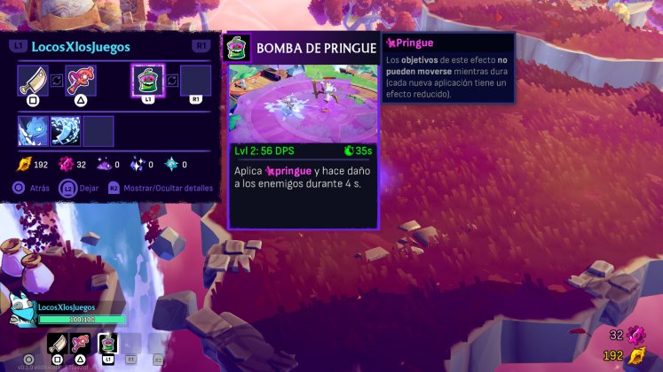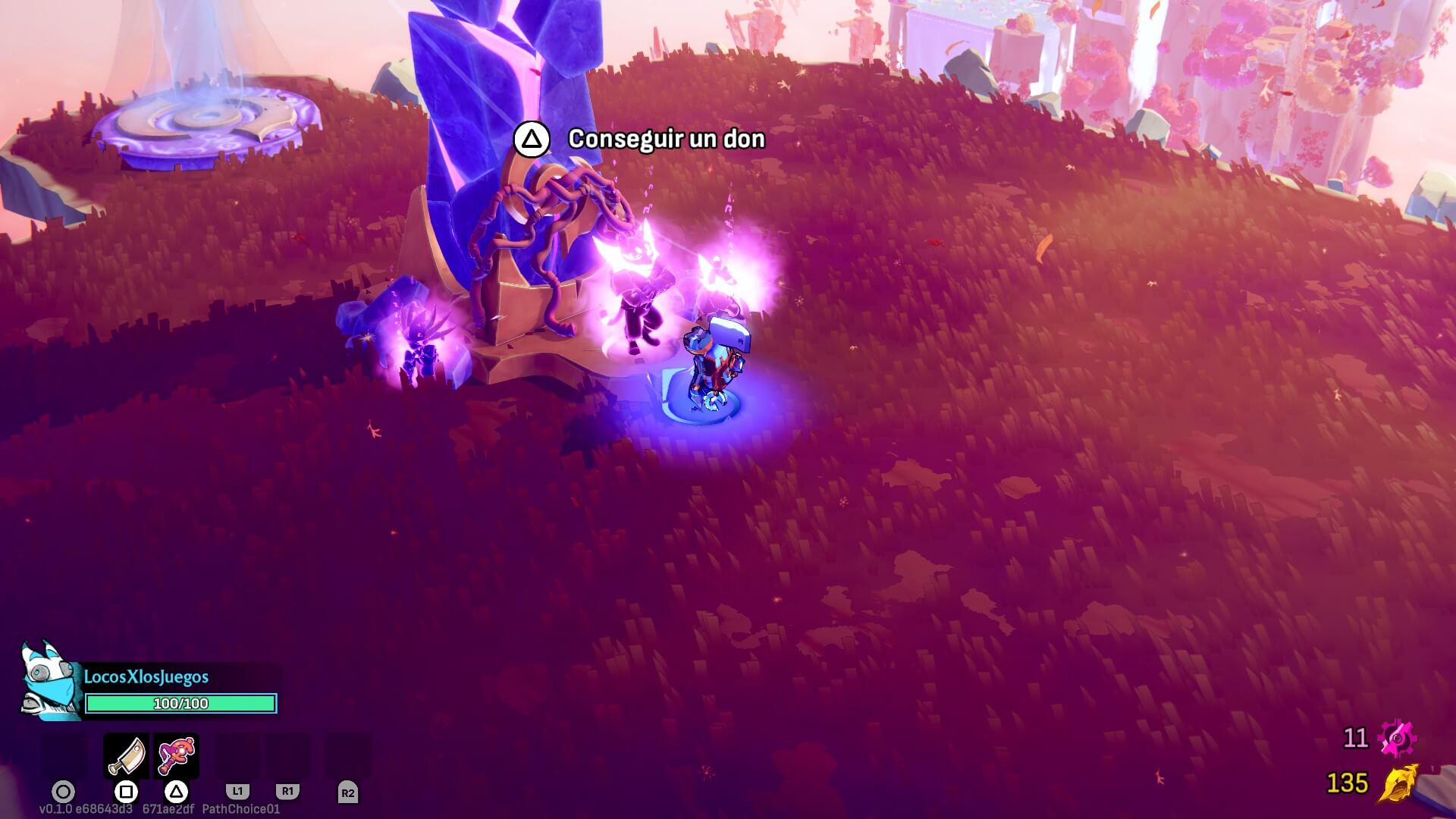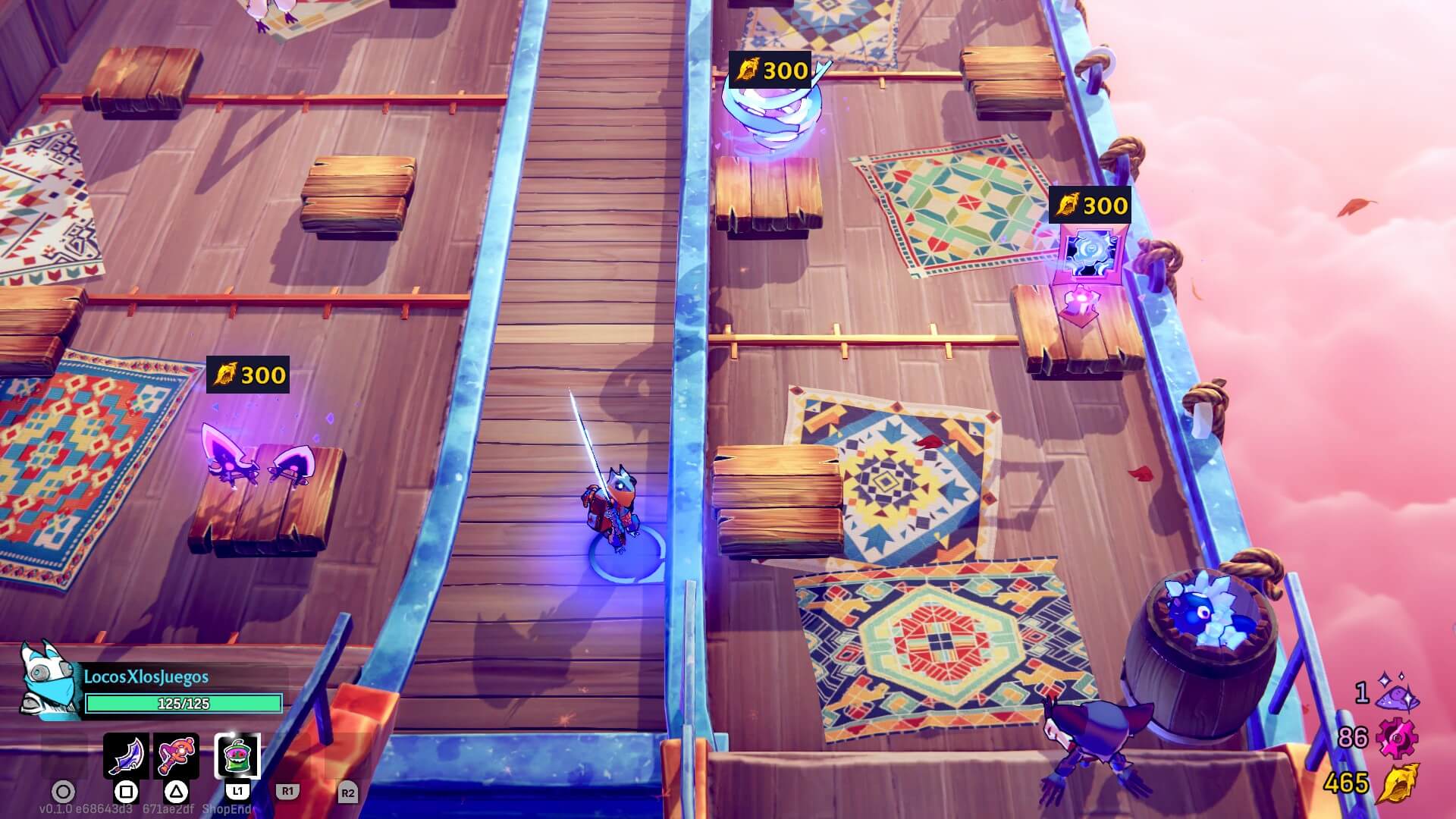 Otra mecánica esencial es el sistema de propulsión del personaje, que permite esquivar ataques y moverse con agilidad entre las islas flotantes. Este “dash” es un recurso ilimitado que se vuelve crucial para sobrevivir en el caos de la batalla, permitiendo esquivar ataques y abrir oportunidades para atacar a los enemigos. Su buen uso puede ser determinante, convirtiéndolo en una herramienta imprescindible.