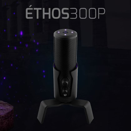 Fabricado con aleación de zinc, el ÉTHOS300P incluye una sólida base de metal ajustable que asegura estabilidad y permite un posicionamiento preciso. Su cable USB antinudos de 1,8 m agrega practicidad, mientras que su tamaño compacto (15,5 x 15,5 x 23,3 cm) y peso de 1 kg lo hacen ideal para cualquier setup.