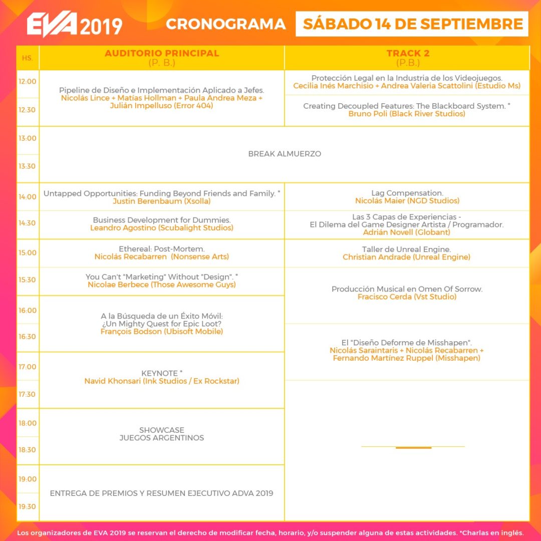 Una invitación a todos los estudios y desarrolladores de videojuegos argentinos a participar en las Rondas de Negocios Internacionales “Game Business” de EVA 2019, que tendrán lugar en A3/ El Salvador. Se trata de una oportunidad única para desarrolladores de videojuegos argentinos y latinoamericanos de establecer nuevos vínculos con otros desarrolladores, proveedores de servicios, publishers e inversores de la industria local, regional e internacional y ofrecer sus proyectos y/o servicios. Este año participarán cerca de 30 publishers y buyers internacionales de importantes empresas que visitarán EVA 2019: Google, Apple, Facebook, Boombit, Epic/ Unreal, Unity, Blowfish, Destructive Creations, Hatch, Humble Bundle, Huckerberry Publishing, iNK Stories, Pixowl, Raw Fury, Renxo, Tamalaki, Xsolla y Those Awesome Guys, entre otros. Actividad exclusiva con inscripción previa AQUI