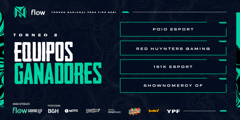 El pasado miércoles 22 de septiembre se disputó la Gran Final del Torneo 2 de los Torneos Nacionales Flow de Free Fire. Poio Esports fue el equipo que se llevó el primer puesto de la clasificación, tras cosechar 63 puntos y dos booyah en el primer y segundo mapa. Seguidamente, Red Hunters Gaming lo escoltó con 61 unidades y un booyah en la tercera partida. 1SIK Esports ganó el último mapa y se quedó en el tercer lugar con 56 puntos. Para completar los cuatro cupos de los participantes en la Fase Clasificatoria, ShowNoMercy OF pasó a la siguiente fase en noviembre sumando 43 unidades en la tabla de posiciones.