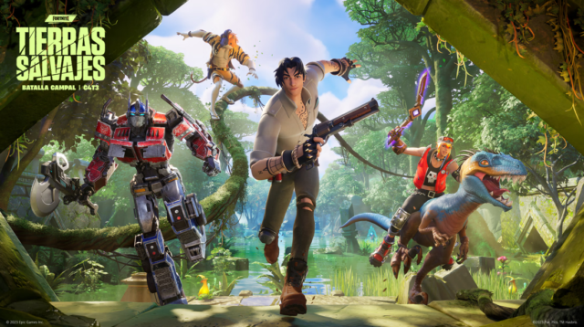 Asciende a las copas de los árboles, monta en velocirraptors, lucha con la vegetación y deslízate por el lodo para ir más rápido y camuflajearte. En los nuevos atuendos del pase de batalla de esta temporada, a los personajes originales de Fortnite se les une Optimus Prime como desbloqueable de nivel 100.
