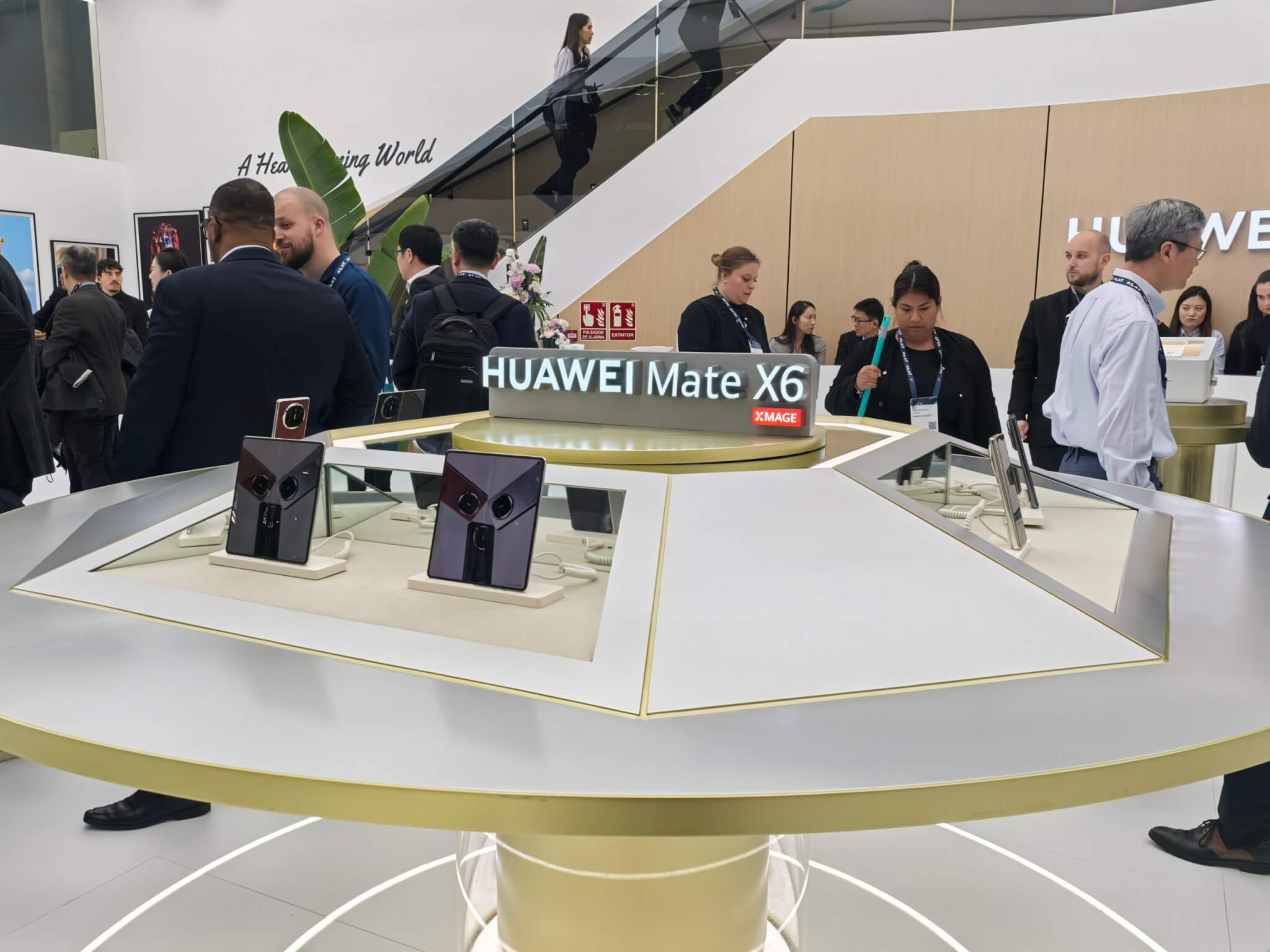 Para resaltar su innovación, Huawei ha incorporado en su stand una pantalla con efectos 3D inmersivos, permitiendo a los visitantes explorar en detalle la estructura y funcionalidad del Mate XT.