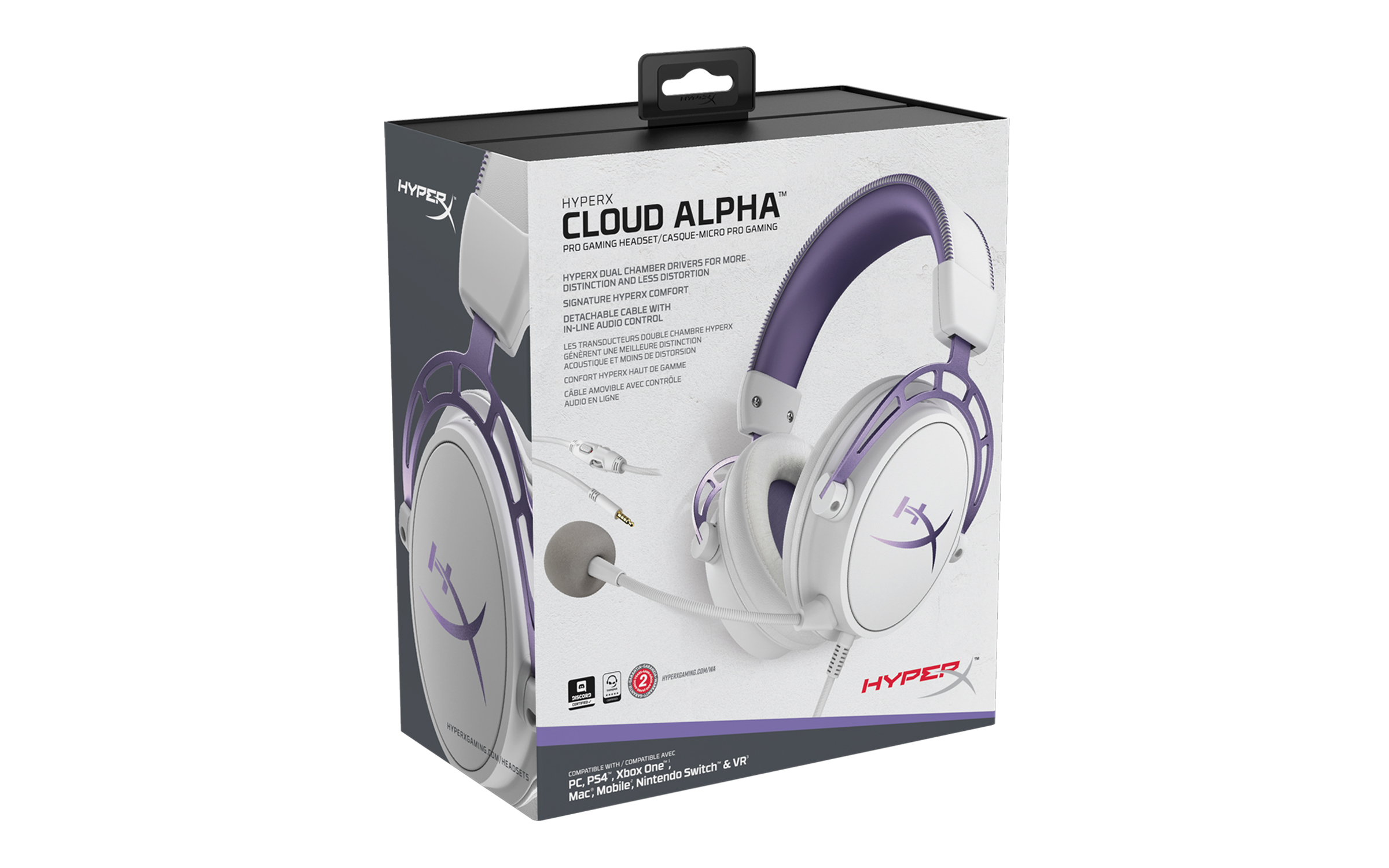 HyperX anuncia la disponibilidad de los audífonos para videojuegos HyperX Cloud Alpha Purple Edition. Estos audífonos combinan las cualidades de los Cloud Alpha originales con un nuevo diseño en morado y blanco, ofreciendo un audio envolvente en los videojuegos, compatibilidad multiplataforma y la distintiva comodidad de HyperX.