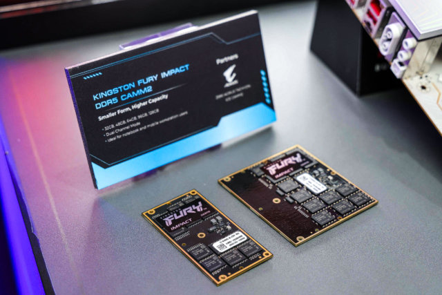 En el Centro de Aceleración FURY, el enfoque estuvo en gamers y usuarios exigentes. Allí se exhibieron las nuevas memorias Kingston FURY Renegade DDR5 con velocidades de hasta 8800 MT/s, y el nuevo módulo compacto DDR5 CAMM2, ideal para laptops y estaciones móviles. Estas soluciones fueron montadas en plataformas de alto rendimiento de ASUS y GIGABYTE.