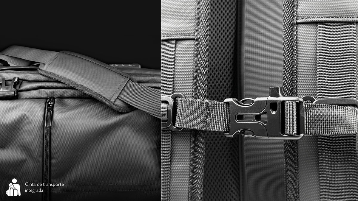 Fabricada con poliéster resistente al agua, la mochila soporta hasta 18 kg de carga y puede convertirse fácilmente en maletín, adaptándose a múltiples contextos, desde reuniones laborales hasta escapadas de fin de semana. Pesa 1,7 kg y sus dimensiones expandibles alcanzan los 35x28x51 cm.