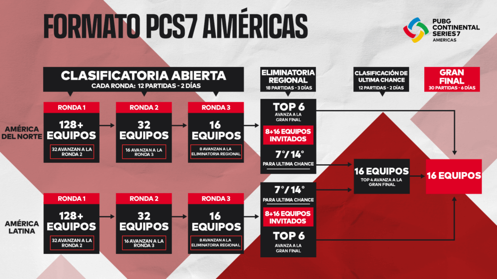 - Con un premio total de USD $25,000 para cada subregión, la Eliminatoria Regional reunirá a los 8 equipos que clasificaron en la Clasificatoria Abierta para competir contra 16 equipos que fueron invitados con base en sus actuaciones en la Fase 2 de ESL PUBG Masters América 2022.