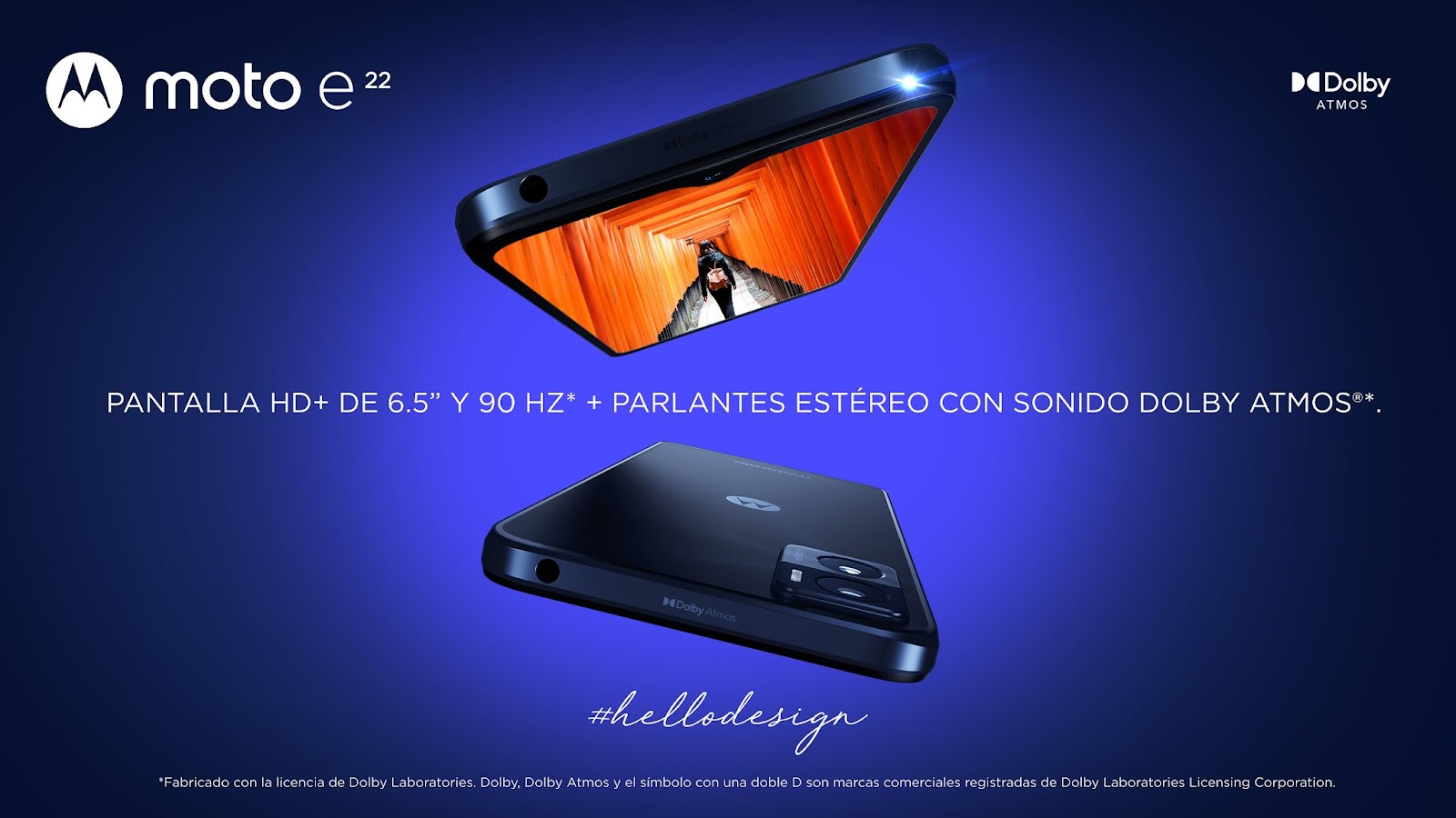 La nueva generación de la familia Motorola moto e, que se caracteriza por ofrecer a los usuarios experiencias innovadoras a precios accesibles, es oficial en el mercado argentino. Los nuevos moto e22 y moto e22i llegan con parlantes estéreo potenciados con Dolby Atmos, una primicia para la familia moto e, pantalla fluida de 90Hz, diseño elegante y sistema de cámara extraordinario garantizado para llevar la experiencia de entretenimiento al siguiente nivel.