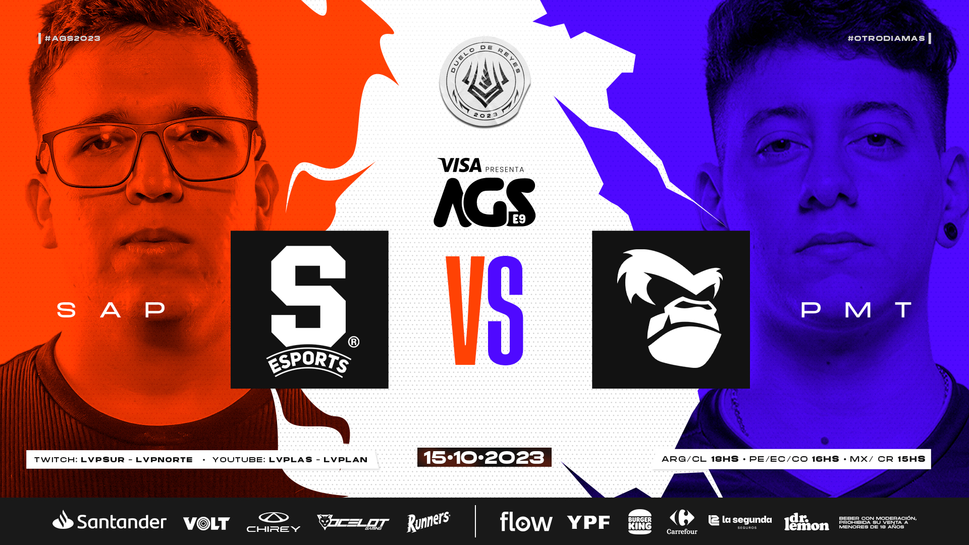 El próximo 15 de octubre a las 18:00 horas de Argentina/Chile, 16:00 horas Perú, Ecuador y Colombia, 15:00 horas de Costa Rica y México, se llevará a cabo la conclusión del competitivo de League of Legends de los regionales Norte (LRN) y Sur (LRSFLOW), que organiza Liga de Videojuegos Profesional (GRUP MEDIAPRO), en el que se enfrentarán los campeones de cada región: Saprissa Esports (LRN) contra Primate (LRS Flow). El encuentro se realizará de manera presencial en el marco de la celebración de AGS 2023, el mayor evento de gaming de Argentina, realizado en el Centro Costa Salguero, en la Ciudad de Buenos Aires. También podrás disfrutarlo por streaming a través de los canales oficiales de Twitch de LVPSur, LVPNorte, así como el de LLA y el canal 601 de Flow