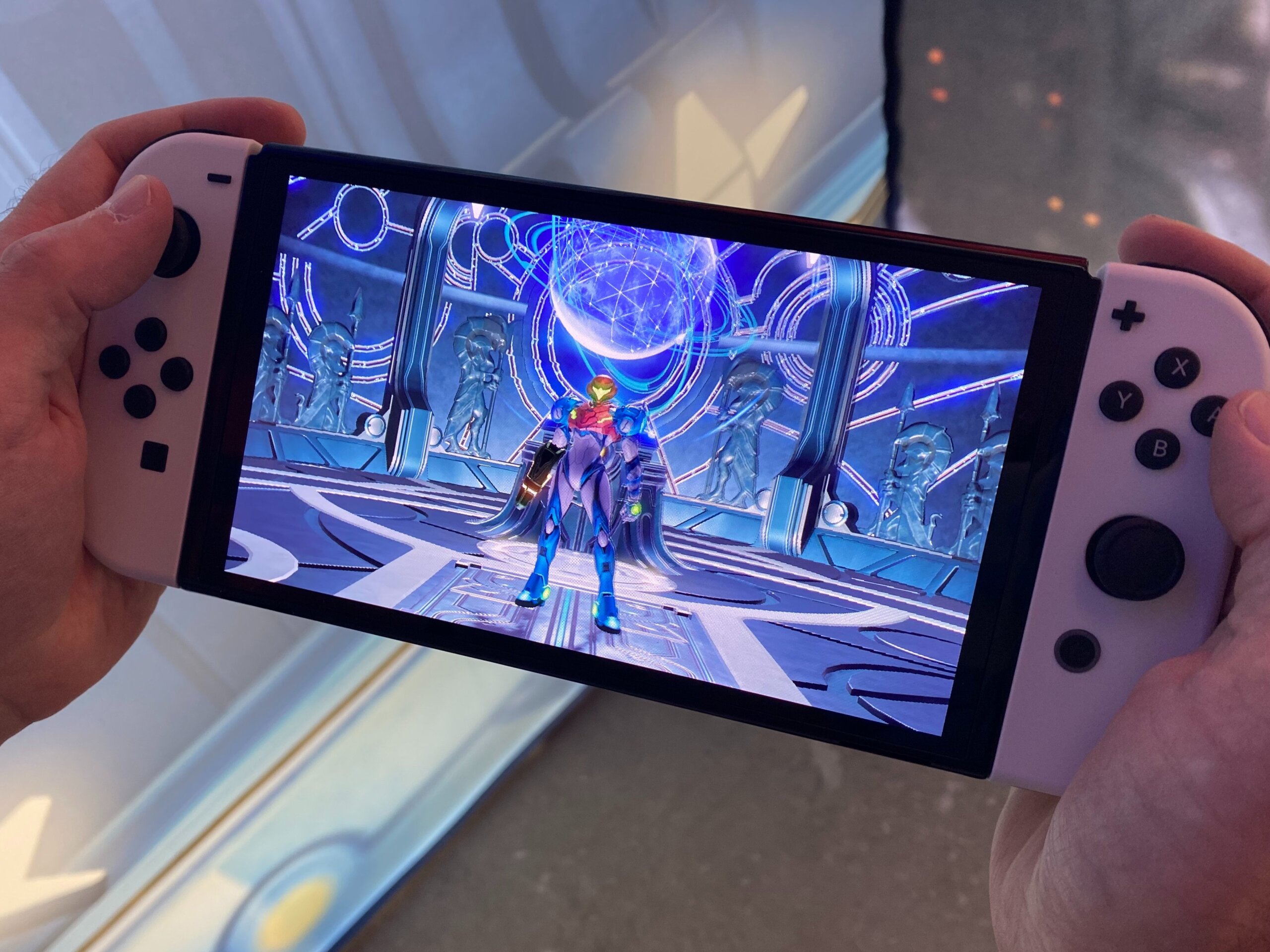 Esto fue gracias a Stephen Totilo que forma parte de Axios Gaming previamente había formado parte de Kotaku, él mismo nos mostró como se ve el Metroid Dread corriendo en el display OLED de esta nueva Nintendo Switch, todo gracias a una foto que sacó. Más allá de hablar de la consola Totilo se refiere al juego del cual se pudo explayar a través de su twitter.