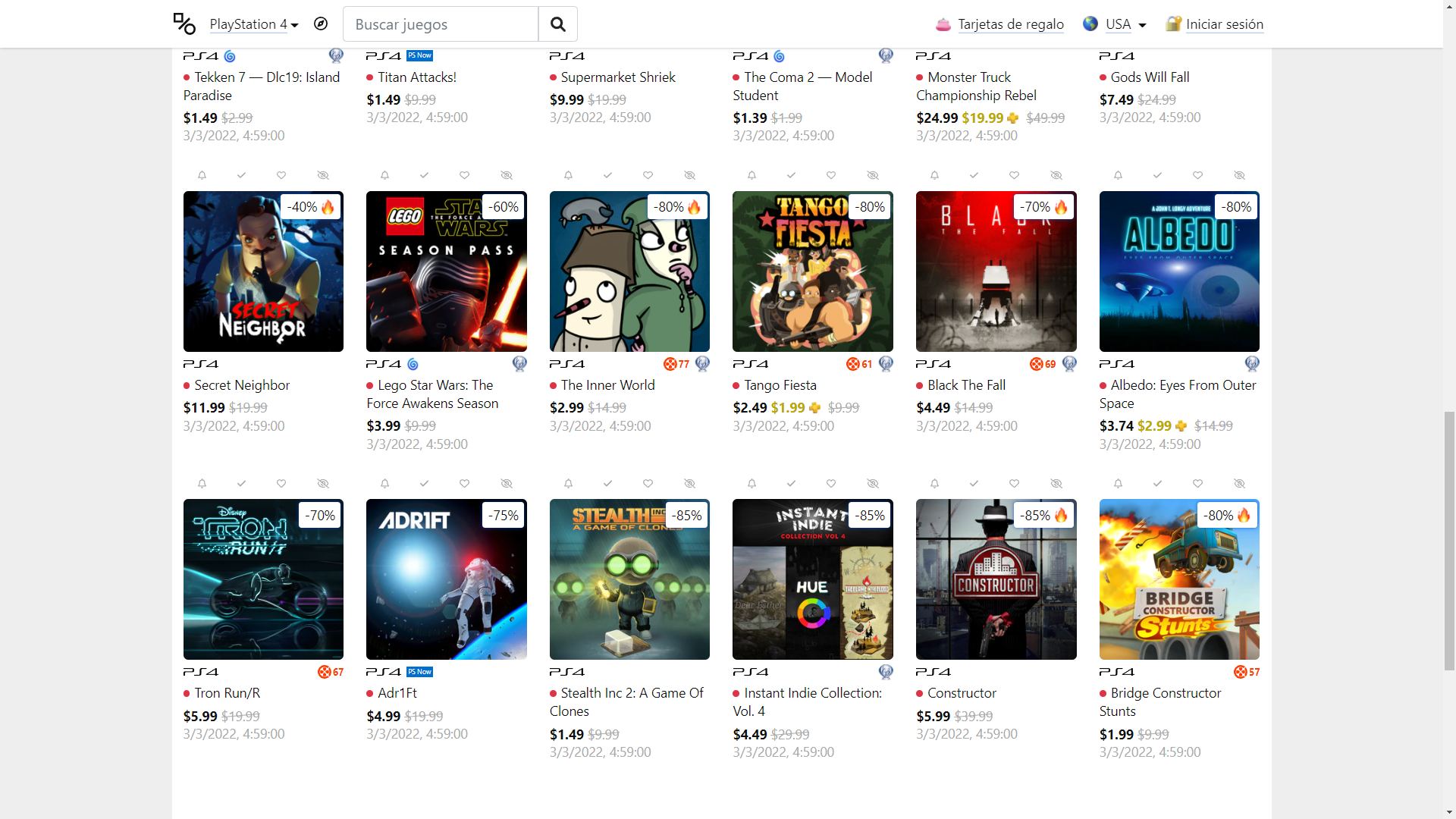 Recuerden que dichos juegos estarán en precio promocional para PlayStation 4 y PlayStation 5 hasta el día 3/3 12 AM horario de Argentina (revisar bien cual juego nos interesa). Como siempre, si quieren ver las ofertas antes que nadie, no duden en sumarse al grupo de Estado Play Argentina en facebook. (Link). Sin más preámbulo, Planet of the Discounts Sale:
