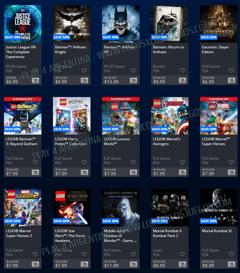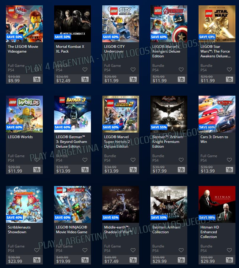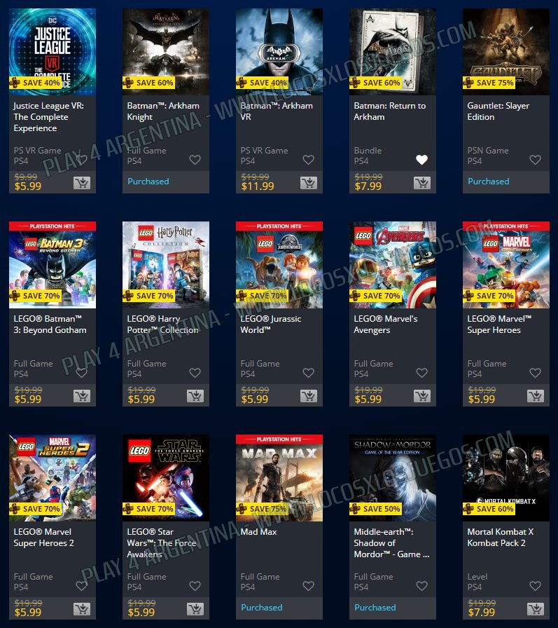 Recuerden que dichos juegos estarán en precio promocional para para PlayStation 4, PlayStation 3 y PS Vita hasta el dí 28/5 las de Warner, y hasta el 4/6 las Dobles (revisar bien cual juego nos interesa).