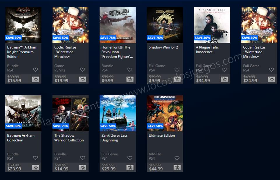 Como lo habían anunciado ayer, PlayStation ha lanzando las grandes ofertas tituladas: Flash Sale o Venta Flash (No hay descuentos para miembros de PlayStation Plus). Dichas ofertas son las únicas disponibles hasta el momento, ya que no tuvimos ofertas semanales esta semana para cuentas: Argentina, Estados Unidos y México.