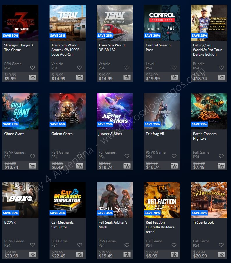Recuerden que las ofertas estarán vigente para PlayStation 4 hasta el día lunes 30/09 12 AM horario de Argentina (revisar bien cual juego nos interesa). Como siempre, si quieren ver las ofertas antes que nadie, no duden en sumarse al grupo de Play 4 Argentina en facebook (Link).