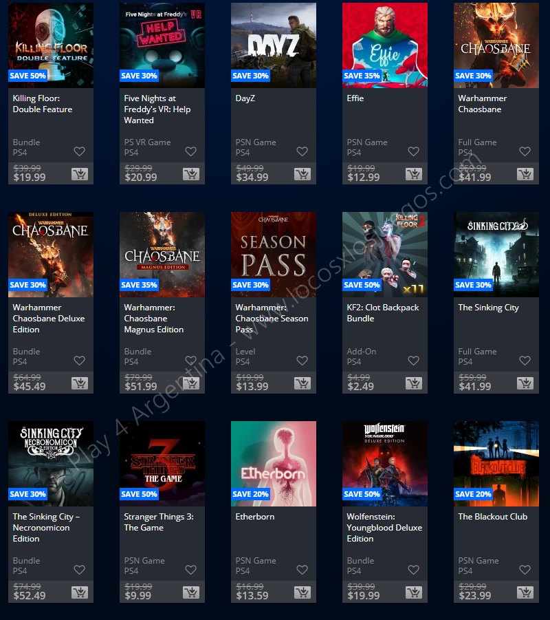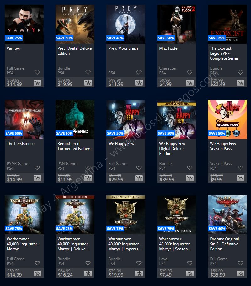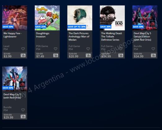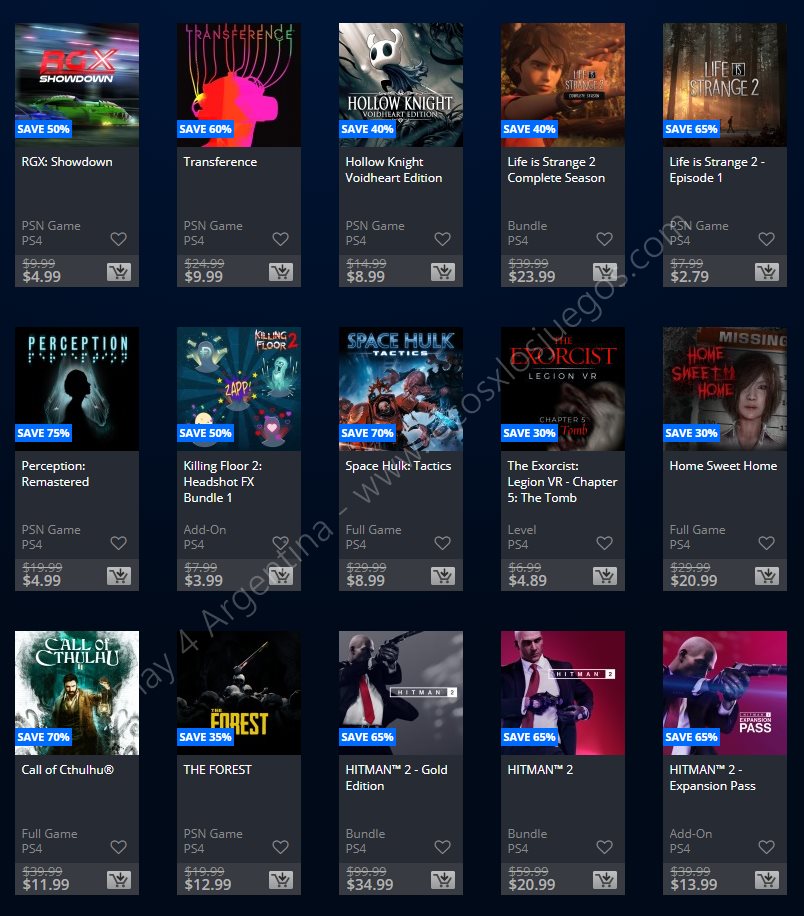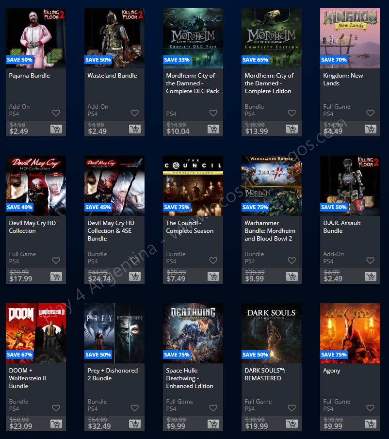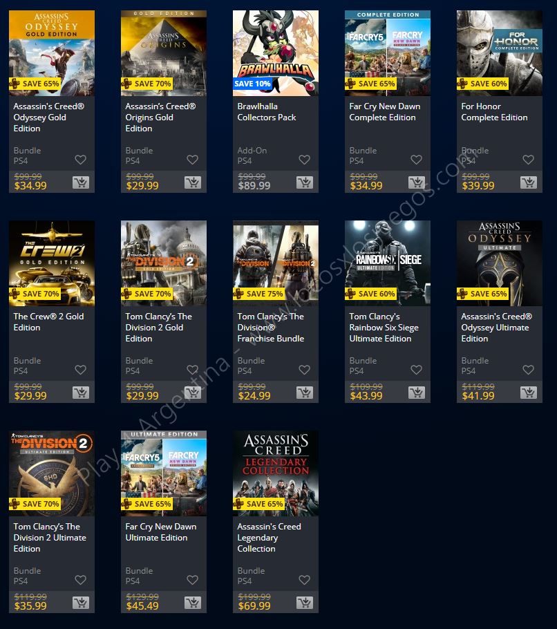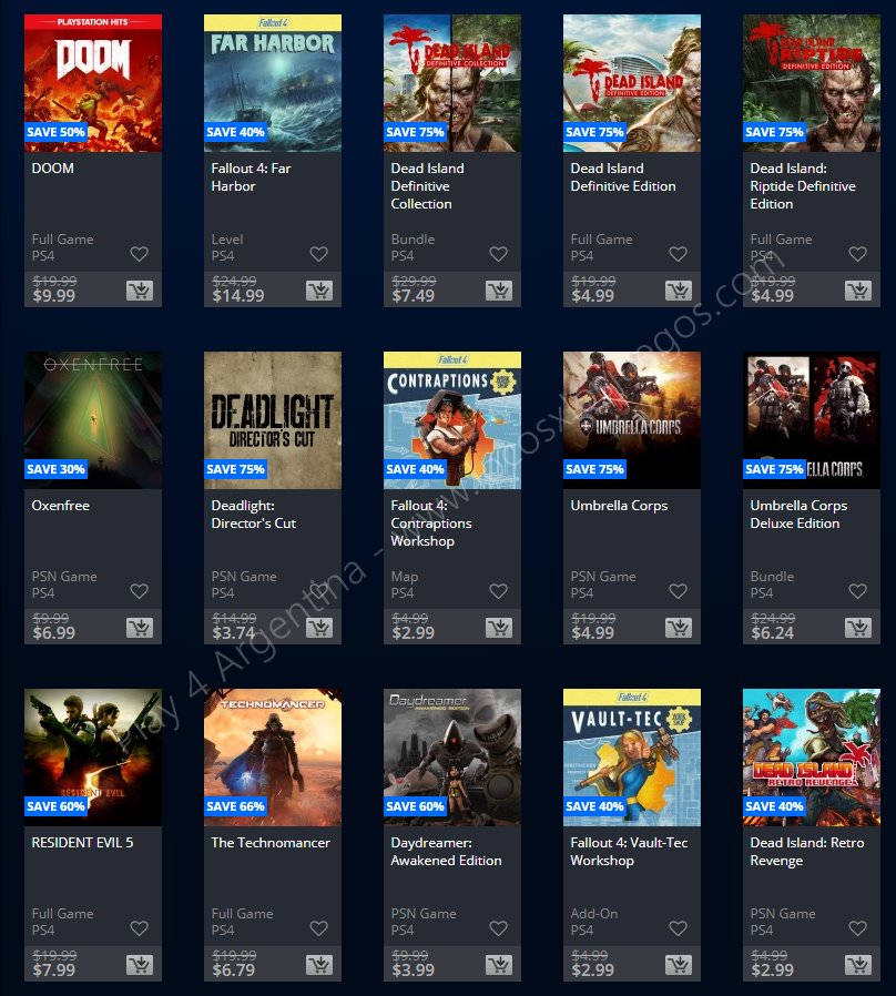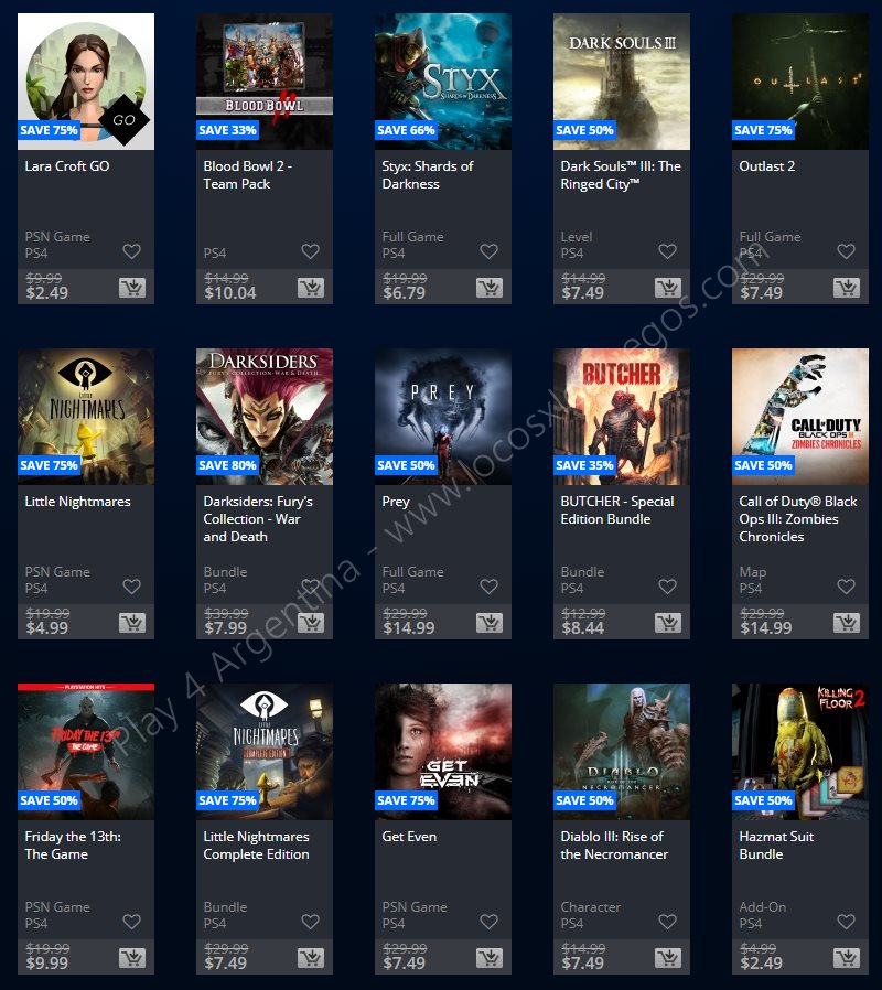 Recuerden que dichos juegos estarán en precio promocional para PlayStation 4, PlayStation 3 y PS Vita: Halloween Sale (Hasta el 1/11), Ubisoft Sale (Hasta el 29/10), y EA Sale (Hasta el 22/10) (revisar bien cual juego nos interesa). Como siempre, si quieren ver las ofertas antes que nadie, no duden en sumarse al grupo de Play 4 Argentina en facebook. (Link).