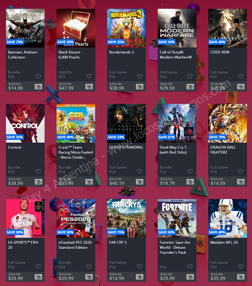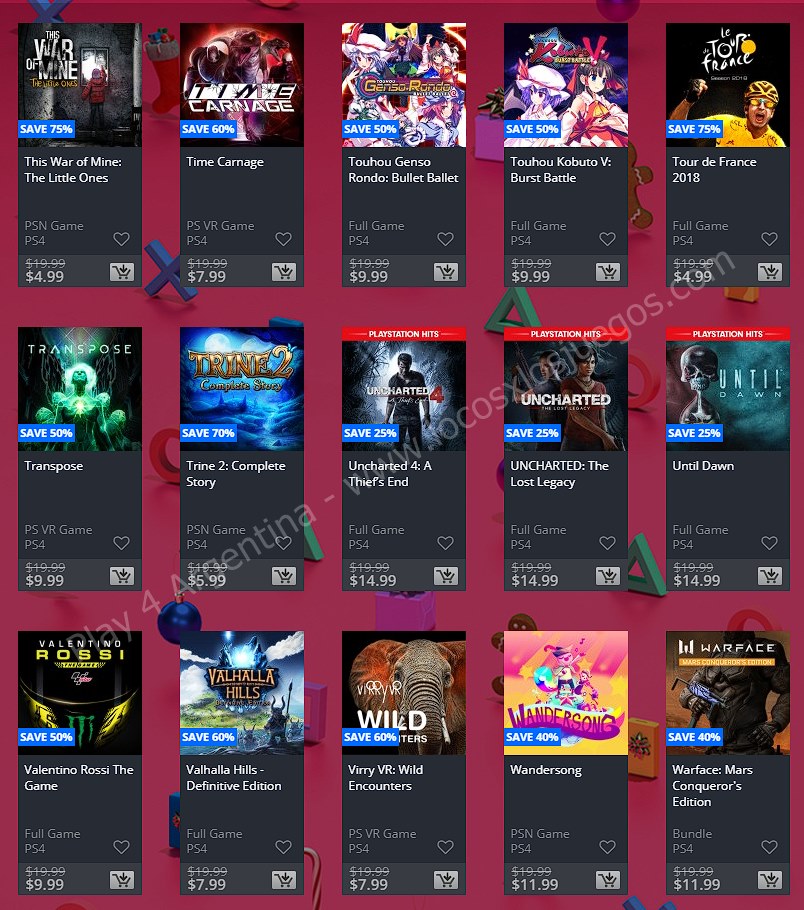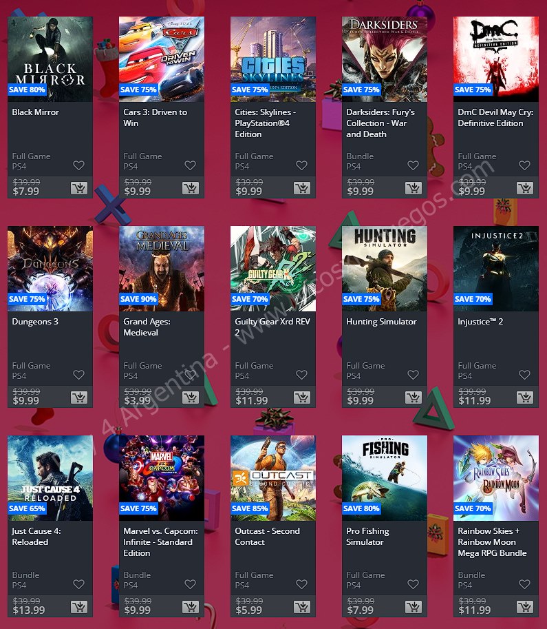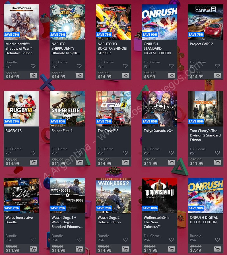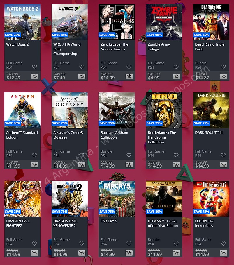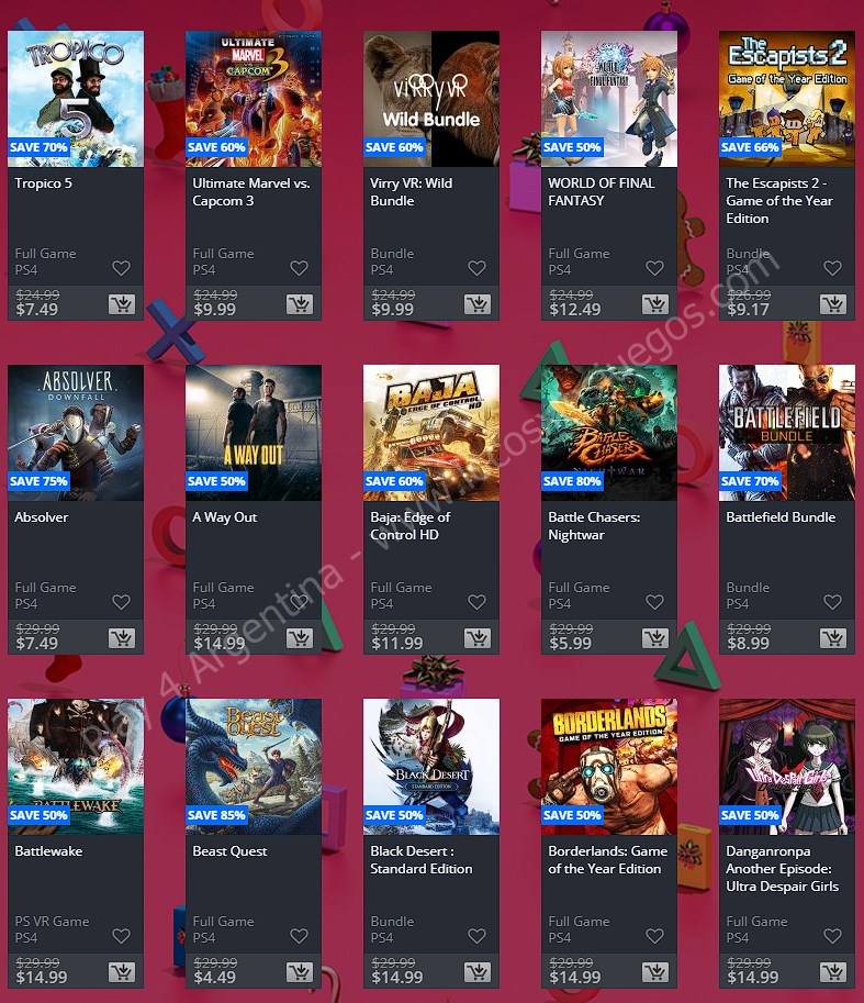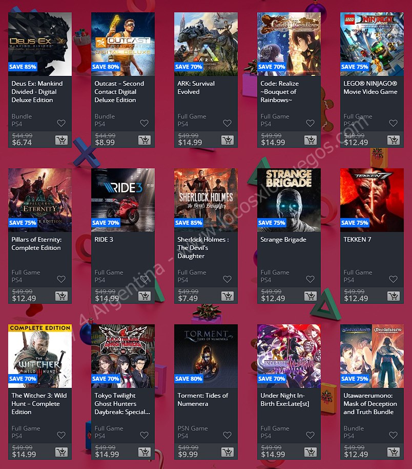Recuerden que dichos juegos estarán en precio promocional para PlayStation 4 hasta el día 6/1 12 AM horario de Argentina (revisar bien cual juego nos interesa) detalle a tener en cuenta, se van a sumar más juegos en la semana 2, y esos son hasta el 16 de enero. Como siempre, si quieren ver las ofertas antes que nadie, no duden en sumarse al grupo de Play 4 Argentina en facebook. (Link). Sin más preámbulo, Holiday Sale Week 1: