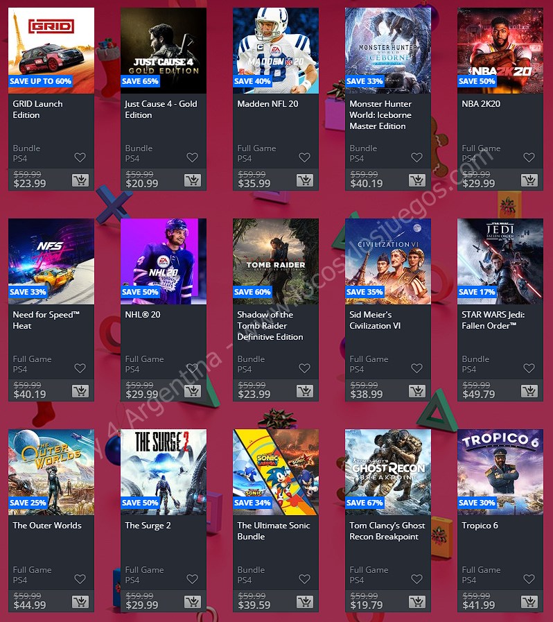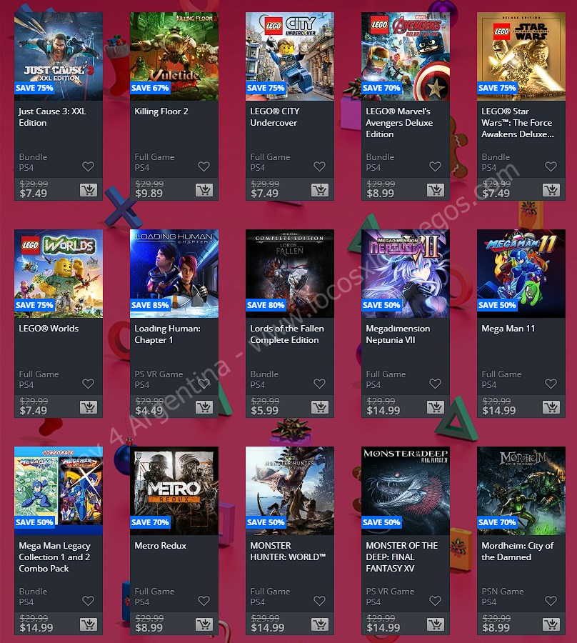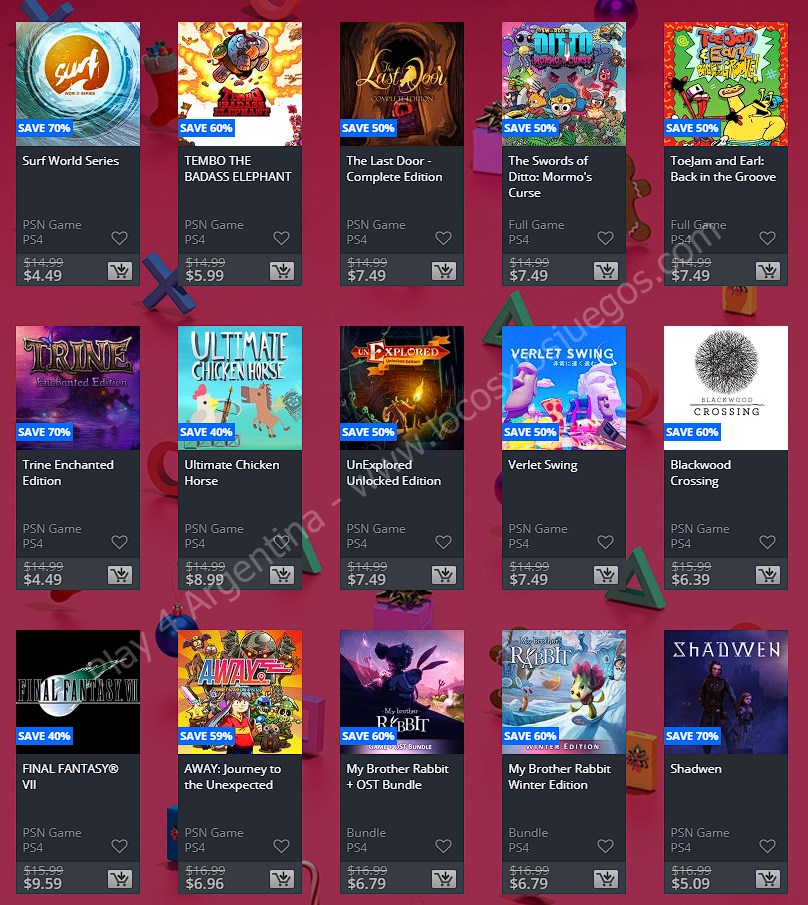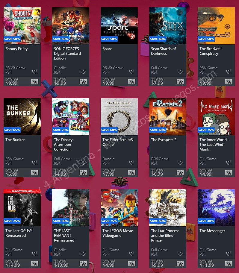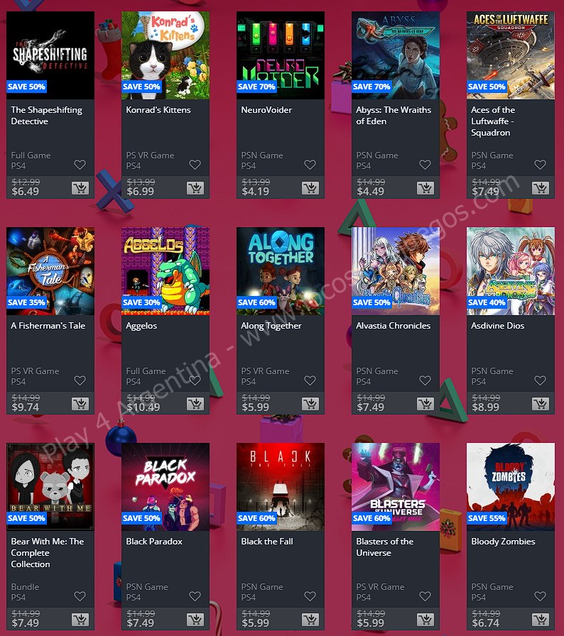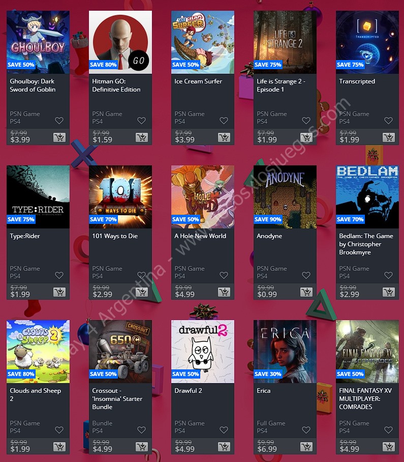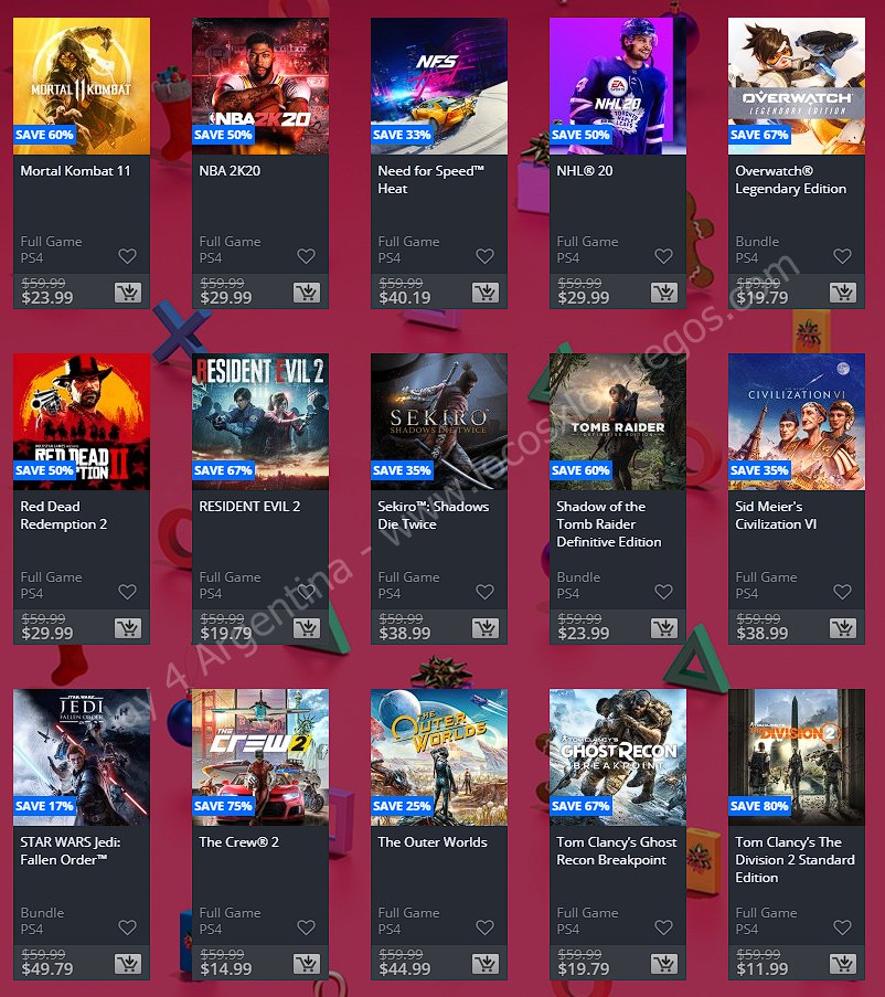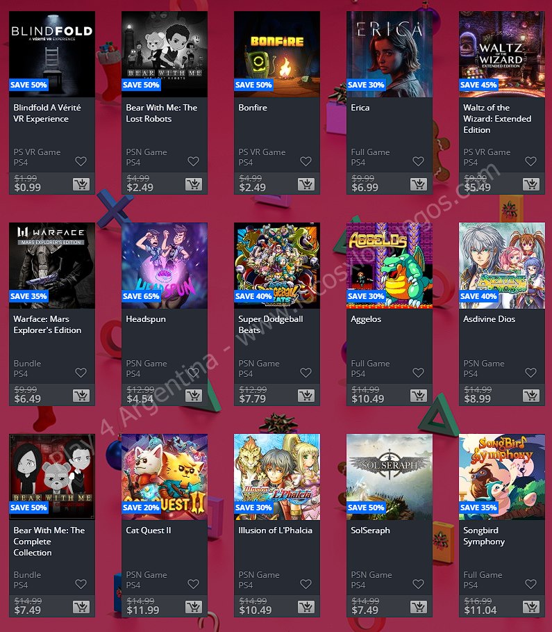 Una nueva semana solo se puede significar una cosa en la comunidad de PlayStation: Ofertas. En esta ocasión nos llegan las nuevas ofertas etiquetadas como “Ofertas semanales” en donde tenemos: Holiday Sale Week 1. (No hay descuentos extra para miembros de PlayStation Plus, ponete las pilas Sony). En esta nota te mostramos los descuentos para cuentas USA, Argentina y México.