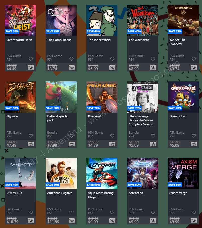 Recuerden que dichos juegos que nos ofrecen los descuentos de September Savings estarán en precio promocional para PlayStation 4, PlayStation 3 y PS Vita hasta el dí 1/10 (revisar bien cual juego nos interesa). Como siempre, si quieren ver las ofertas antes que nadie, no duden en sumarse al grupo de Play 4 Argentina en facebook (Link).