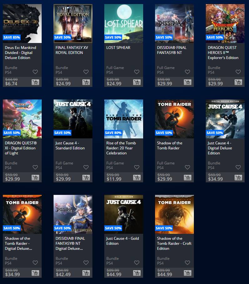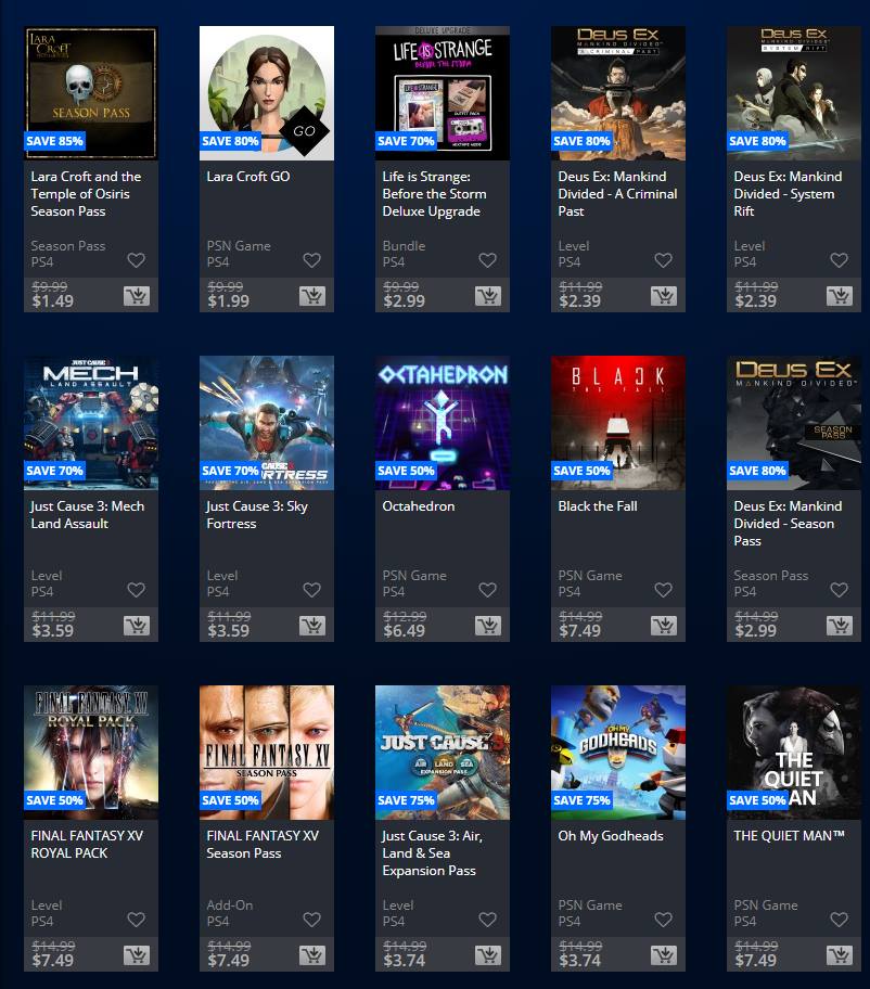 Un nuevo martes ha llegado en donde PlayStation nos presenta las grandes ofertas etiquetadas como “Ofertas semanales”, en esta ocasión tenemos: Square Enix Sale y Ubisoft Sale (En las de Ubisoft hay descuento extra para miembros de PlayStation Plus). En esta nota te mostramos los descuentos para cuentas USA, Argentina y México.