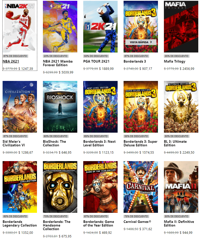 Microsoft continúa lanzando grandes ofertas para los juegos que se encuentran disponibles en su tienda digital. Ahora, tendremos a disposición nuevas ofertas que llegan bajo el nombre de “2K Sale y que nos da la posibilidad de obtener títulos como NBA 2K21, Borderlands 3 o los títulos de la franquicia Mafia a un precio más que interesante.