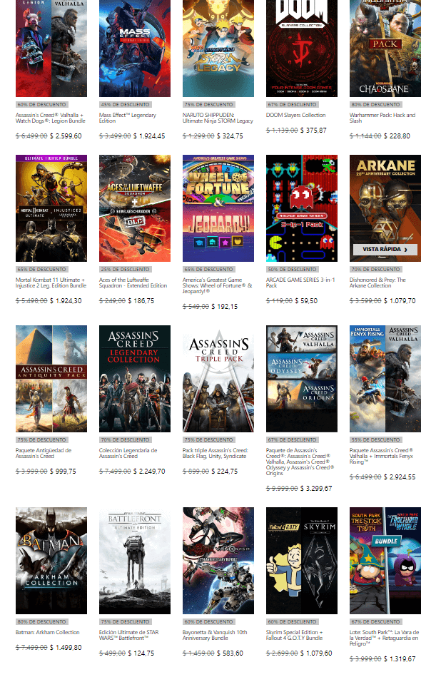 Microsoft continúa lanzando grandes ofertas para los juegos que se encuentran disponibles en su tienda digital. Ahora, tendremos a disposición nuevas ofertas que llegan bajo el nombre de “Grandes Ofertas en Packs” y que nos da la posibilidad de obtener descuentos en complementos de diversos títulos como Assassin’s Creed Valhalla + WatchDogs Legion Bundle, Mass Effect Legendary Edition y más.