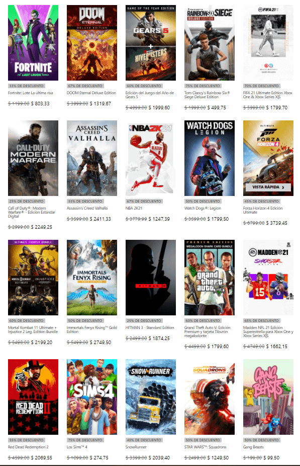 Microsoft continúa lanzando grandes ofertas para los juegos que se encuentran disponibles en su tienda digital. Ahora, tendremos a disposición nuevas ofertas que llegan bajo el nombre de “Ofertas de Otoño” y que nos da la posibilidad de obtener grandes juegos como Assassin’s Creed Valhalla, Immortals Fenyx Rising, Red Dead Redemption 2 y muchísimos títulos más a precio promocional.