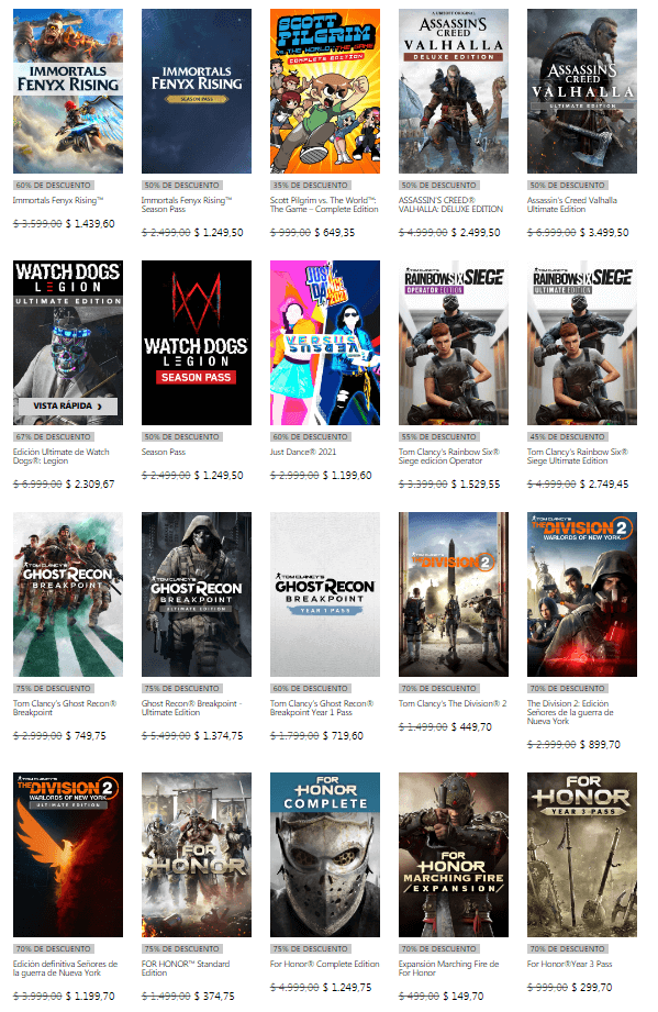 Microsoft continúa lanzando grandes ofertas para los juegos que se encuentran disponibles en su tienda digital. Ahora, tendremos a disposición nuevas ofertas que llegan bajo el nombre de “Ubisoft Sale” y que nos da la posibilidad de obtener grandes títulos como Immortals Fenyx Rising, Assassin’s Creed Valhalla, Watch Dogs Legion y más con interesantes descuentos.