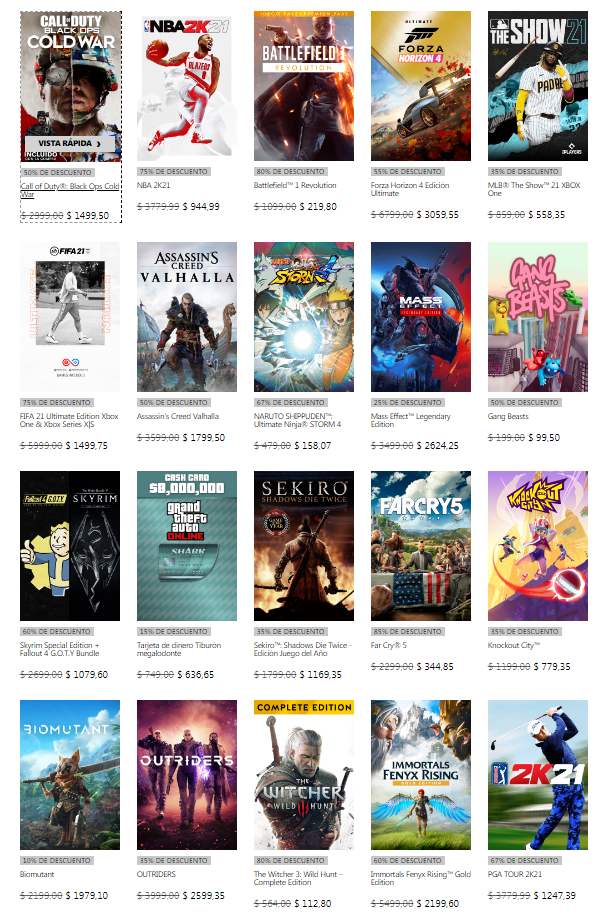 Microsoft continúa lanzando grandes ofertas para los juegos que se encuentran disponibles en su tienda digital. Ahora, tendremos a disposición nuevas ofertas que llegan bajo el nombre de “Ultimate Game Sale” y que nos da la posibilidad de obtener grandes títulos como Call of Duty: Black Ops Cold War, Immortals Fenyx Rising, Mortal Kombat 11 Ultimate y Cyberpunk 2077, entre otros, con interesantes descuentos.