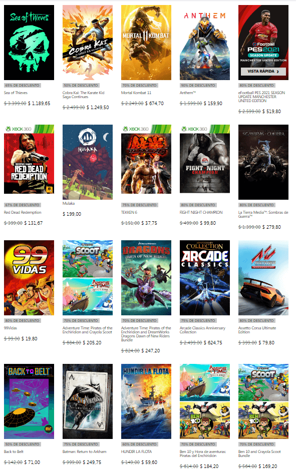 Microsoft continúa lanzando grandes ofertas para los juegos que se encuentran disponibles en su tienda digital. Ahora, tendremos a disposición nuevas ofertas que llegan bajo el nombre de “Venta Especial en Juegos” y que nos da la posibilidad de obtener grandes títulos como Sea of Thieves, Mortal Kombat 11 y Middle Earth: Shadow of War, entre otros, con interesantes descuentos.