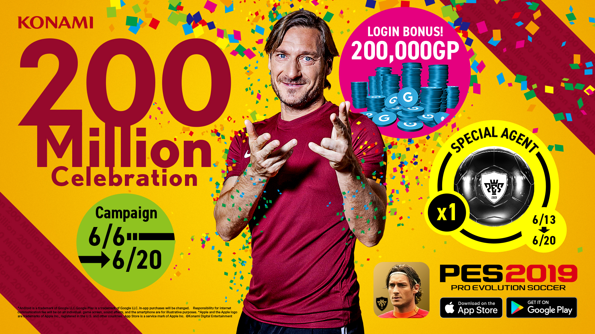 Con motivo del 2.º aniversario de su lanzamiento, PES 2019 Mobile también actualizó recientemente su icono para incluir a la leyenda italiana Francesco Totti.