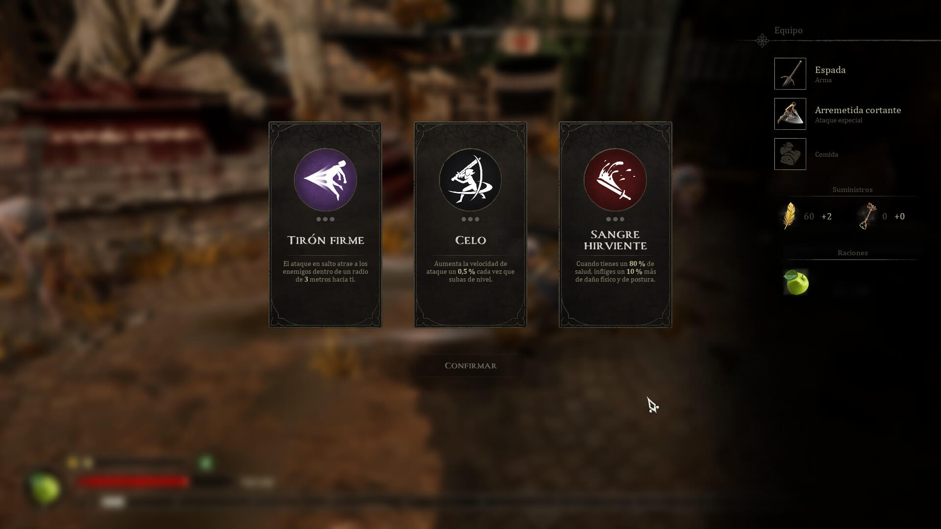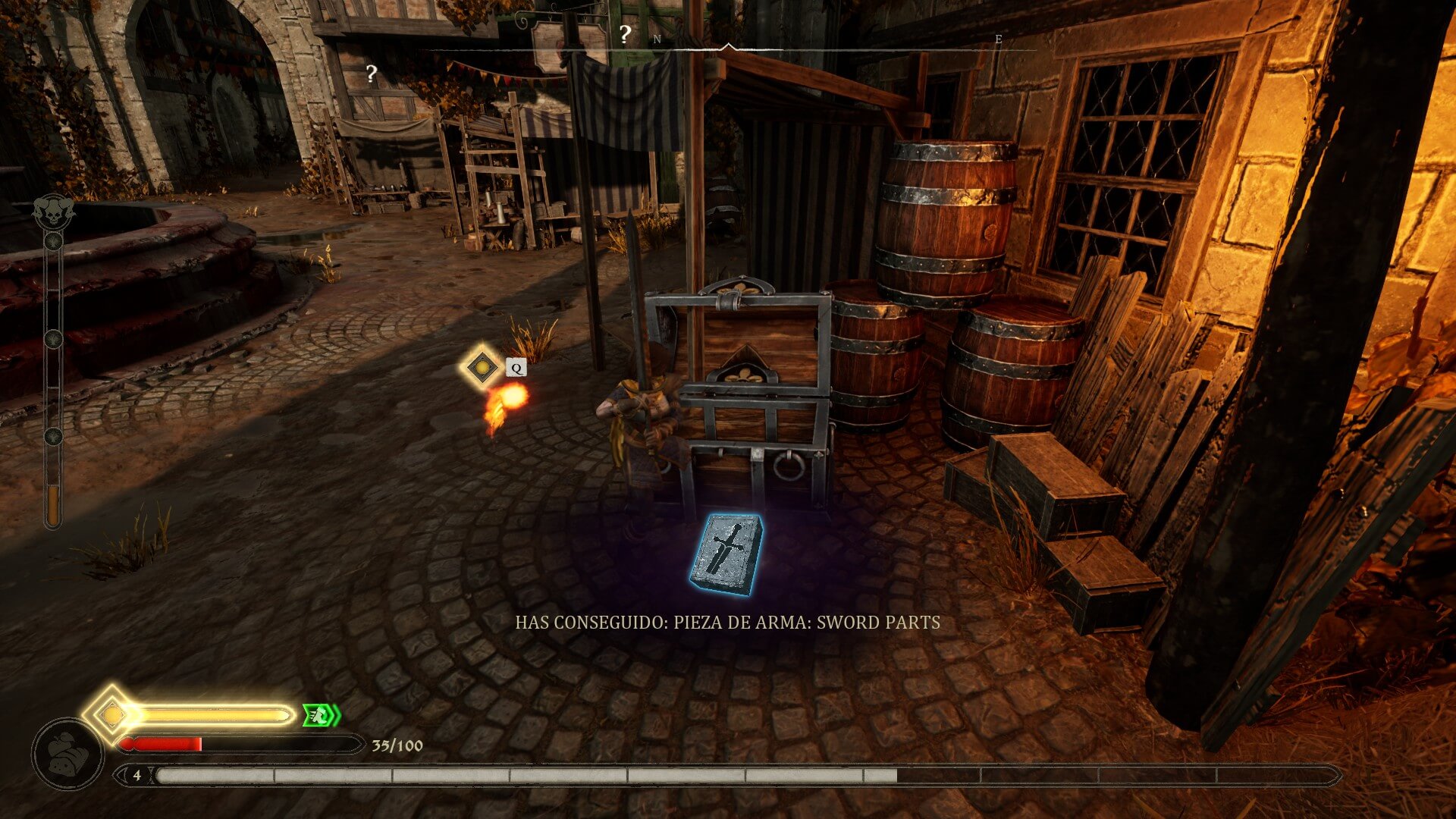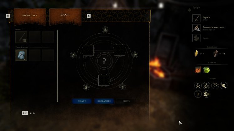 El juego ofrece momentáneamente mediante su demo solo espadas rápidas, pero en su versión definitiva han prometido varios tipos de armas. Mediante una especie de “limbo” donde nos encontraremos entre run y run, podremos hacerle mejoras a esta espada en una mesa de trabajo (o herrería).