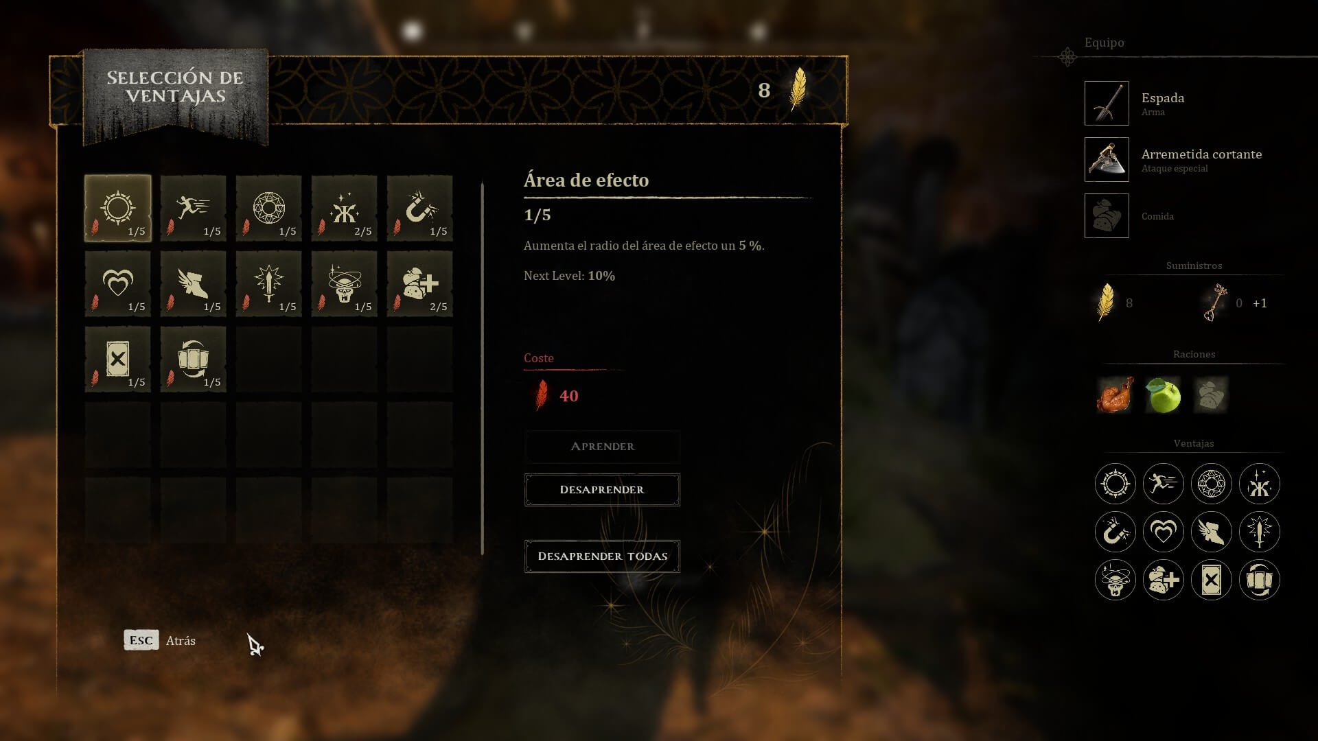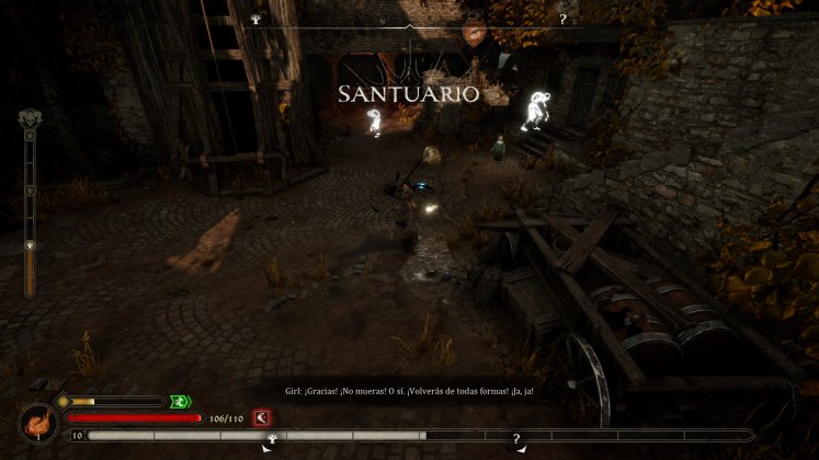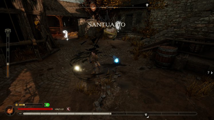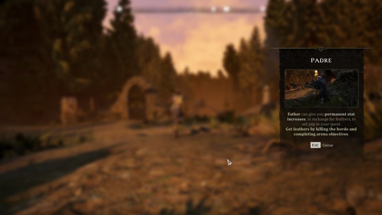 Derrotar enemigos también otorga plumas, que sirven para desbloquear mejoras permanentes y empezar cada partida con ventajas que se compran al Padre, un emisario que se encuentra en el Santosanctum, la ubicación que llegamos al morir o salir victoriosos. También hay otro items, que van desde llaves que permiten abrir nuevas zonas o cofres, que se obtienen al completar los objetivos y permiten acceder al último item, partes de armas para forjar o reforzar las nuestras.