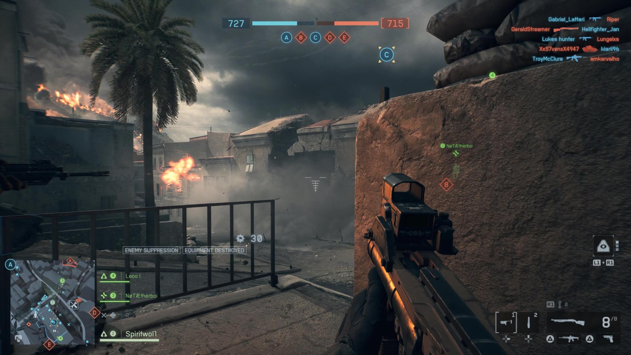 Aparte de Conquista estaba el modo avance, que es más reducido, de solo 16 jugadores. Por otra parte, está el modo Rey de la Colina y el clásico Dominación. Para probar como va cada clase, y como son los mapas achicados.