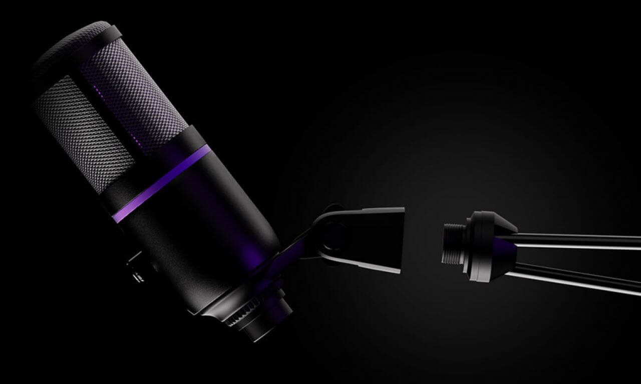 El micrófono se conecta mediante USB tipo C y no requiere drivers adicionales, ya que incluye configuración automática plug and play para comenzar a grabar o transmitir de inmediato. Se entrega con un soporte metálico desmontable y plegable, con rotación de 360 grados y ajuste de altura, además de un adaptador compatible con la mayoría de los brazos para micrófono del mercado.