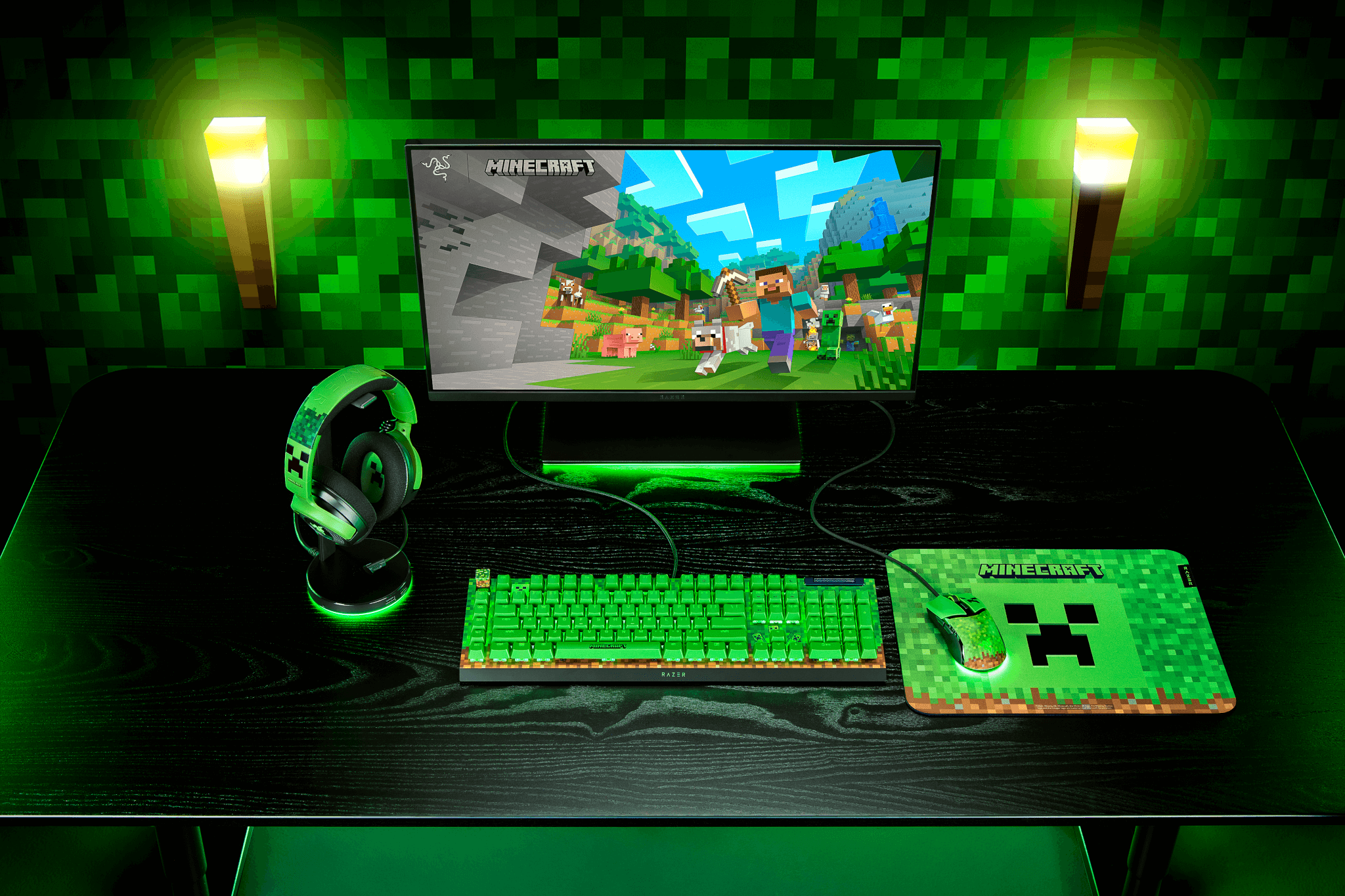 Razer anunció una colaboración con Mojang Studios para lanzar una nueva línea de periféricos inspirados en Minecraft. Esta colección combina el diseño característico del popular videojuego con la calidad y rendimiento de los productos de Razer.