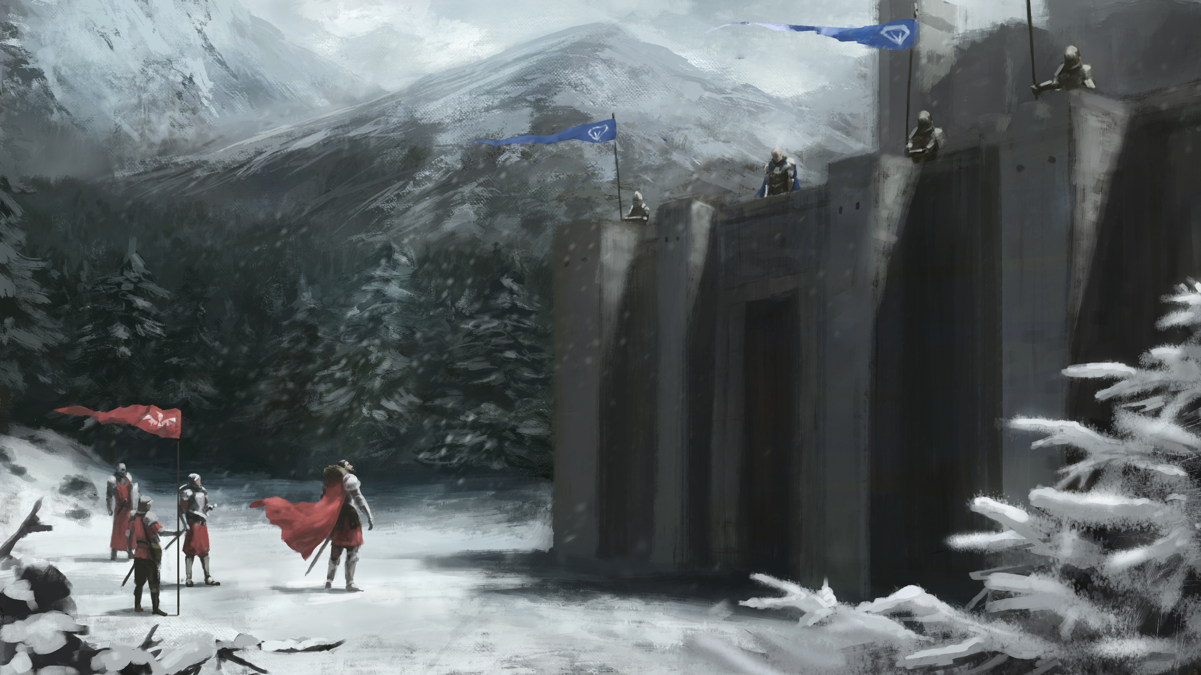 La historia de Bannermen es una mezcla de eventos vinculados a la fuerza con cinta adhesiva virtual. Su punto más alto se encuentra en la escena introductoria que representa la batalla desesperada que pone en marcha la búsqueda de Lord Berrian. Después, se trata de una espiral descendente de personajes principales estereotipados que carecen de personalidad, junto con personajes secundarios que se presentan repentinamente, solo para desaparecer poco después. La acción también salta de las planicies congeladas al desierto y al bosque en lo que se siente como un instante, en lugar de una larga marcha a través de todo un reino.