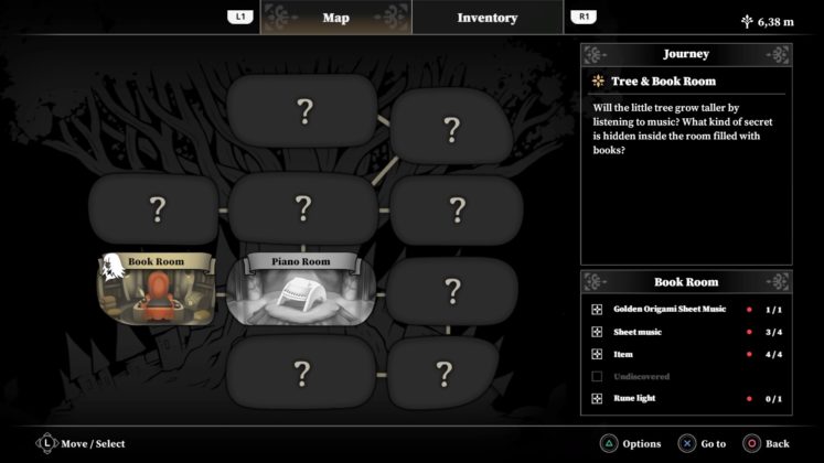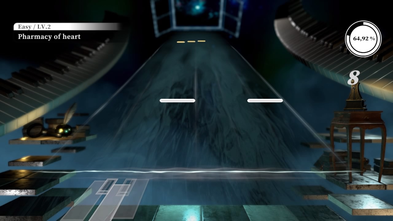 En resumen, para salir de esta lugar vamos a tener que ir tocando melodías en dicho piano, con cada canción completada el mismo ira creciendo, para ello la pequeña va a tener que conseguir las diferentes partituras que contienen las canciones a tocar. Es aquí en donde el juego nos ofrece dos caras que conforman la misma moneda, por un lado conseguir las piezas, y por el otro realizar la presentación con éxito.