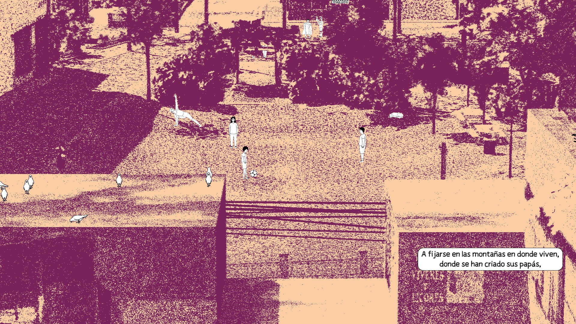 En cierto momento, los recuerdos se cruzan entre la niñez y la adolescencia. Aparecen dolores físicos y emocionales como una lesión en la rodilla jugando en un pequeño club de barrio, fiestas a las que no te invitan y tu madre va a buscarte, o amigos que simplemente desaparecen de tu vida. Por momentos, también el parque lindo y tranquilo que de chico recordabamos, y nuestro barrio pacífico, se tornó en un sitio de mala muerte, que hasta nuestra madre desconfía. Esos detalles que están tan marcados en la infancia en latinoamérica, y quizás, en muchos otros lugares más.