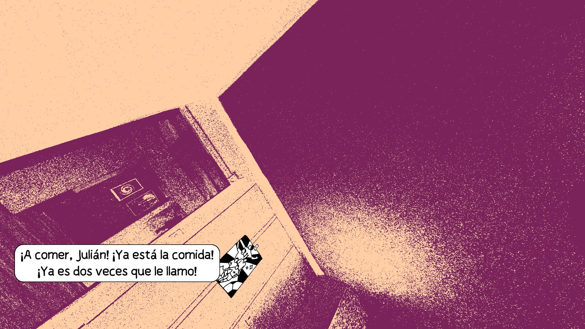Con el correr del juego, esa calidez nostálgica empieza a desdibujarse. El mundo se convierte en un ruido similar al de una TV sin señal, justo cuando los recuerdos de Julián comienzan a agotarse. Surgen entonces escenas con una lógica más onírica: pateás pelotas en un espacio amplio, mientras los edificios brotan a tu alrededor y el entorno cambia de esos colores melancólicos a verdes y amarillos inquietantes. Y hay más de estas transiciones. Despelote juega con las reglas del medio.