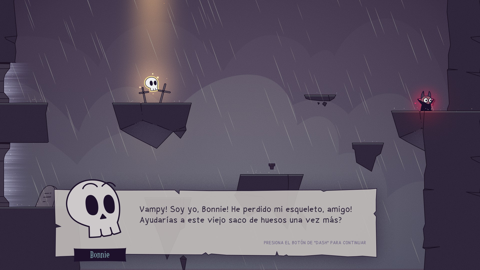 Este bello metroidvania plataformero en 2D con un arte simple hecho a mano, y con unos tangos que suenan continuamente durante la aventura, es una gran sorpresa creada por Valentín Zacarias, Pablo Cuello y Joaquín Calvo, tres argentinos que dieron vida a Vampi, nuestro protagonista.