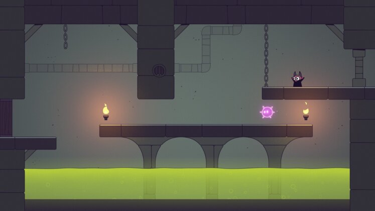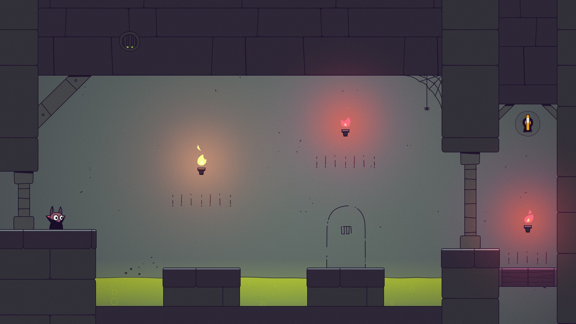 El título no abunda de controles. Utilizando las flechas de dirección, un botón para saltar y otro para hacer un “dash”, es suficiente. Con esas herramientas deberemos sortear los obstáculos de cada habitación por la que pasamos para poder acceder a la siguiente, teniendo ciertas secciones bien diferenciadas entre ellas. Por ejemplo, habrá habitaciones con lava, otras con veneno, o con enemigos más complejos de esquivar.