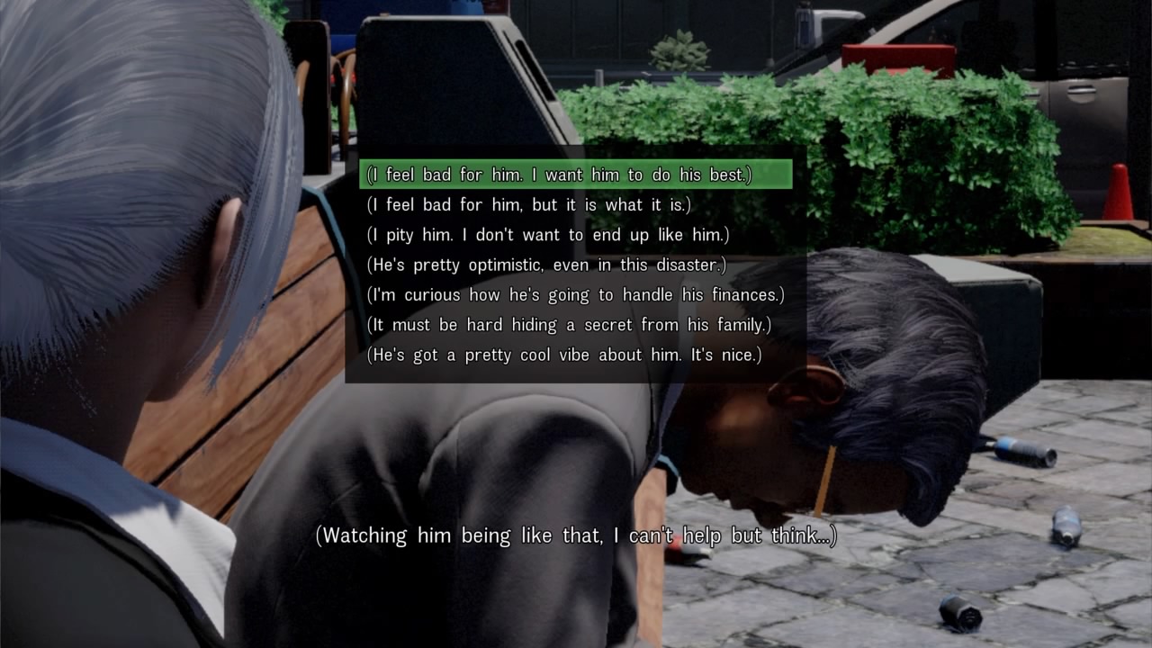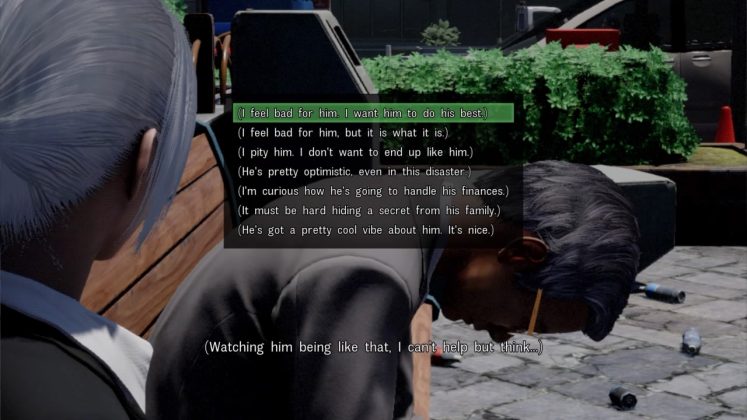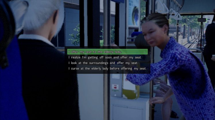 Algo que tenemos que tener en cuenta desde el primer momento es que nos encontramos ante un juego particular, que se encuentra por fuera del molde al que estamos acostumbrados. Lo primero que tenemos que hacer cuando arrancamos es crearnos nuestro personaje, el creador de personajes es bastante limitado, pero cumple con el estandar para lograr una buena waifu. Ni bien terminamos vamos a lanzarnos derecho al argumento del titulo, nos encontramos en un autobús el cual se ve envuelto por un terremoto. Contamos con ciertos diálogos y acciones a realizar durante el desastre que van a determinar los sucesos a continuación, en más de una ocasión el juego nos mete de lleno en que haríamos si nos encontramos en una de estas situaciones. En este sentido el nivel de realismo y lo crudo de las situaciones que se nos presentan nos harán replantearnos en más de una ocasión ciertas decisiones morales tomaríamos nosotros, ¿Salvamos a una persona o anteponemos nuestra seguridad?. Estas situaciones las vamos a ver seguidos, si bien el título se luce en este apartado, en cuanto al desarrollo argumental y como afectan nuestras elecciones de forma directa a la trama no son de lo mejor, por no decir nulas.
